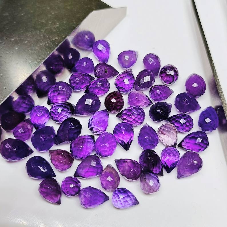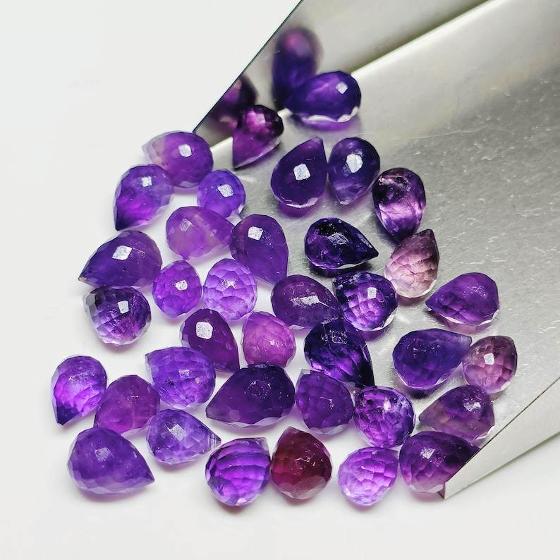 ลูกปัดอัญมณีทรงหยดน้ำตาสีม่วงธรรมชาติสำหรับทำเครื่องประดับจี้อัญมณีขนาด5x7มม.