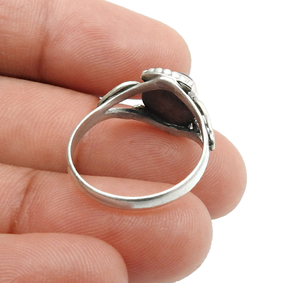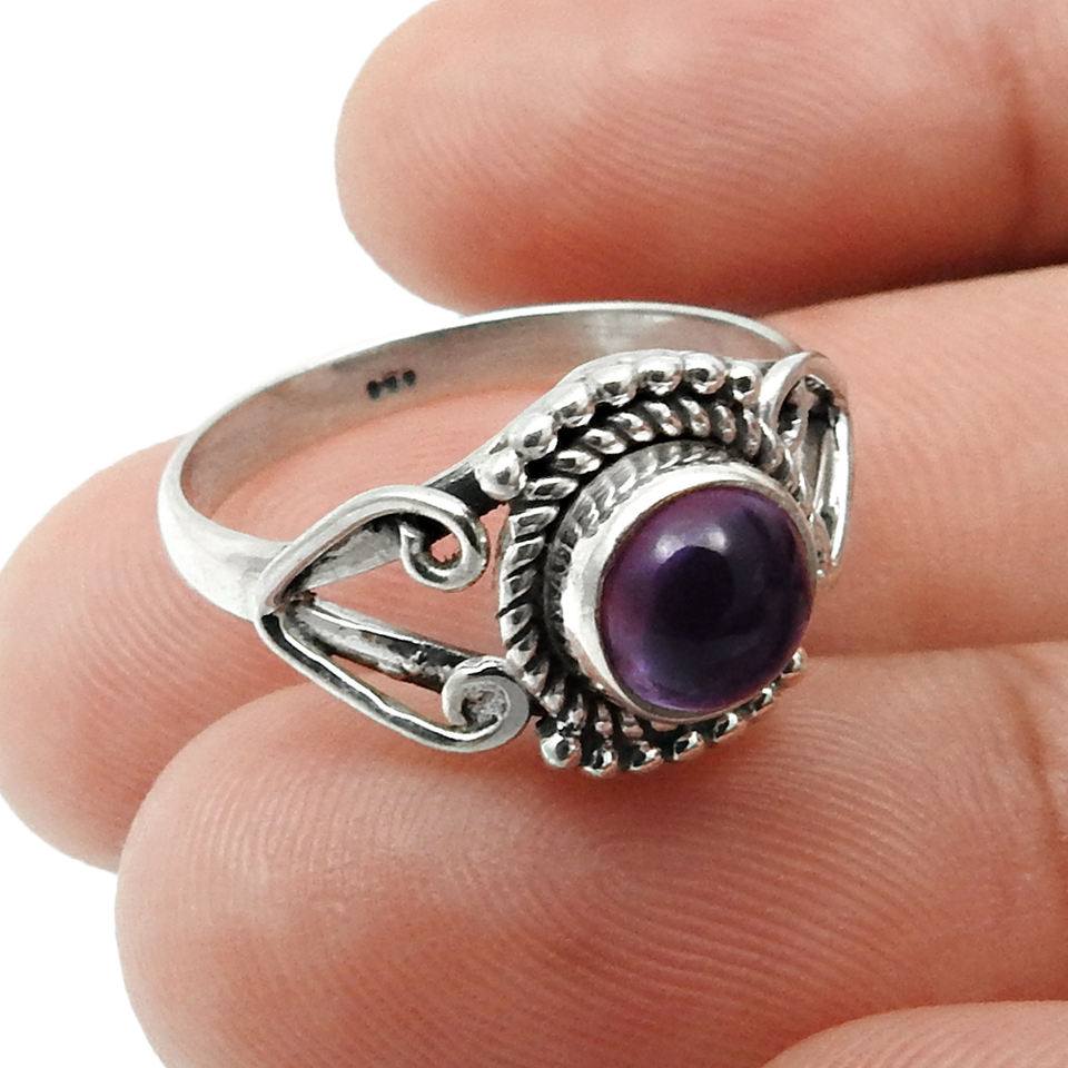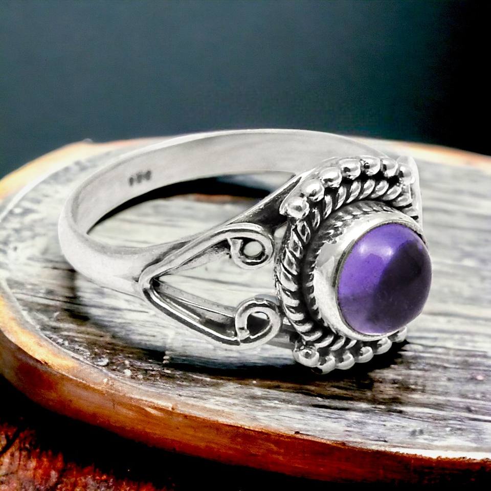 อัญมณีอเมทิสต์สีม่วงธรรมชาติ 925 เงินสเตอร์ลิงทรงกลมแหวนคลาสสิกโบฮีเมียนเครื่องประดับแฮนด์เมดผู้ผลิตราคาขายส่ง