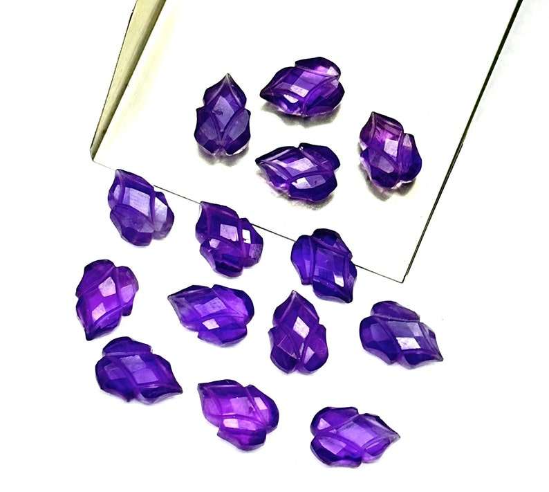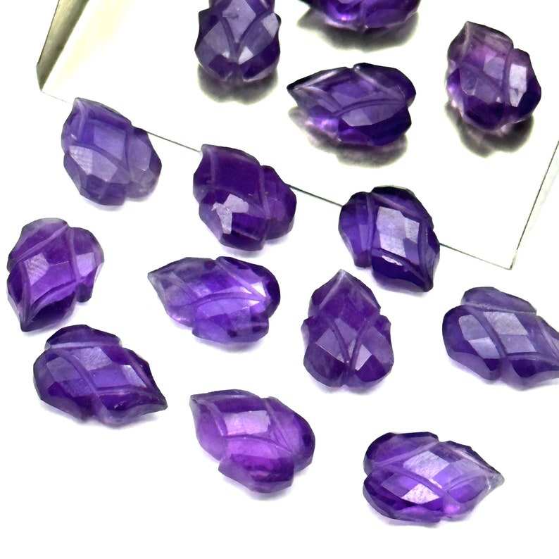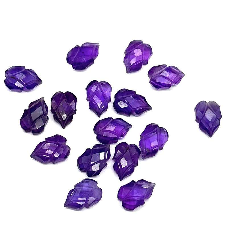 ลูกปัดอัญมณีแกะสลักใบอเมทิสต์สีม่วงธรรมชาติขนาด9X13มม. ลูกปัดอัญมณีสำหรับทำเครื่องประดับ