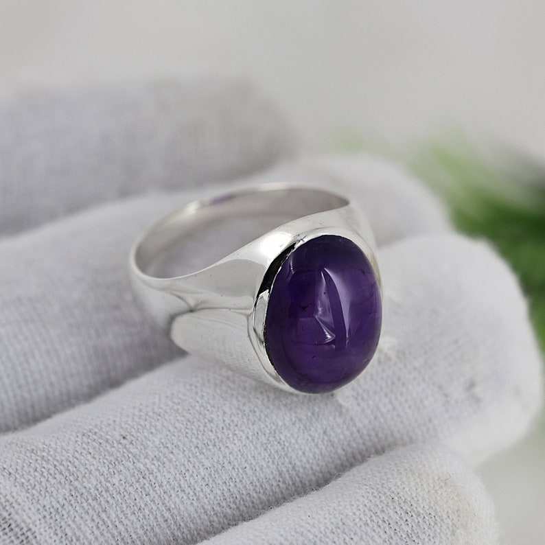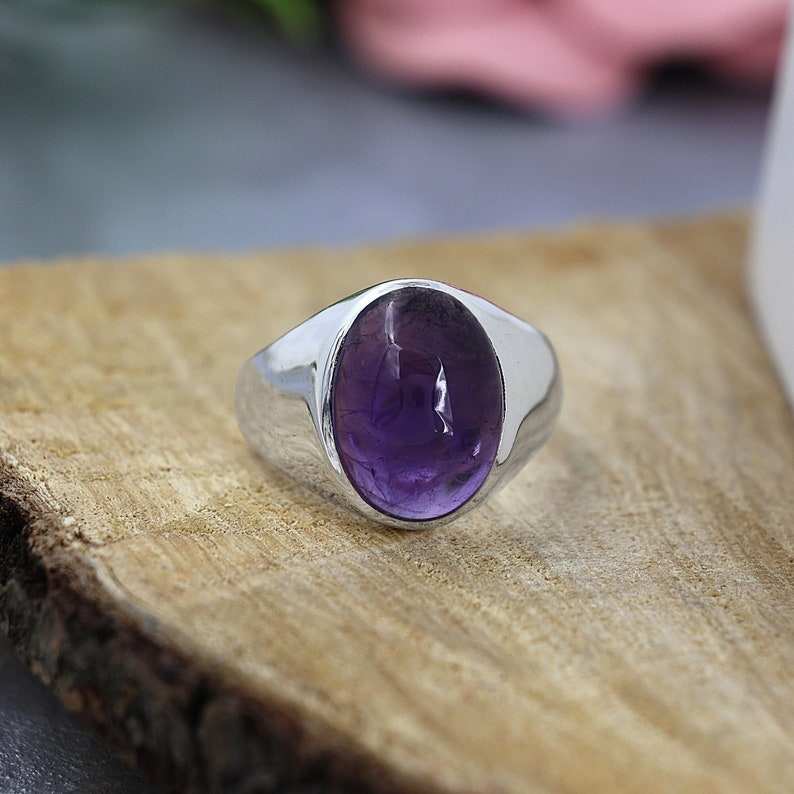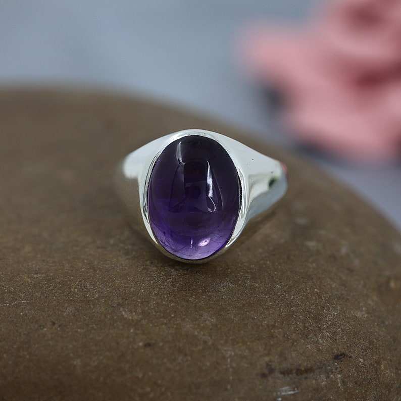 แหวนพลอยอเมทิสต์สีม่วงธรรมชาติทรงรีเรียบ แหวนเงินแท้ 925 สำหรับงานปาร์ตี้ แหวนแฟชั่นสำหรับผู้หญิง ราคาขายส่ง