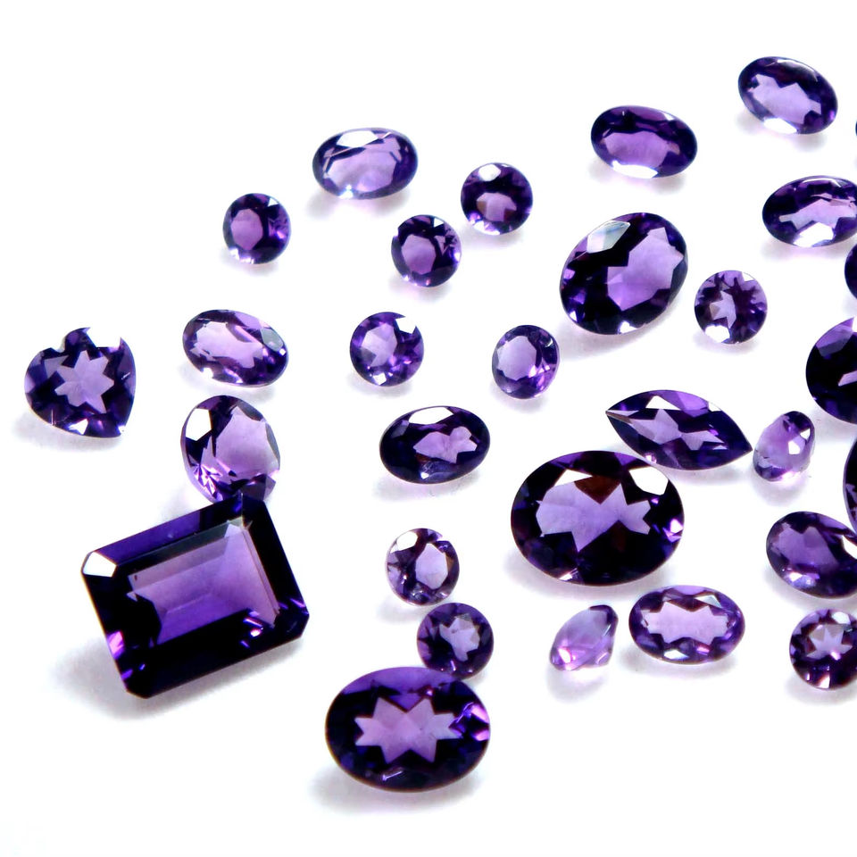 พลอยอะมีทิสต์สีม่วงธรรมชาติ ราคาโรงงานขายส่ง คุณภาพสูง ทรงเหลี่ยมเจียระไนหลากหลายรูปแบบ พลอยแท้สำหรับเป็นหินประจำเดือนเกิด