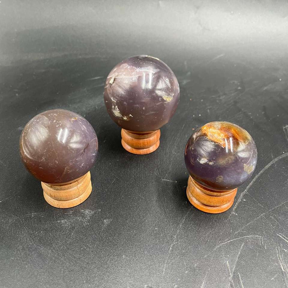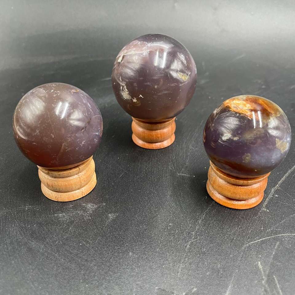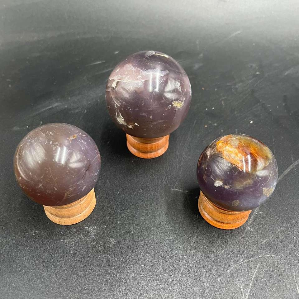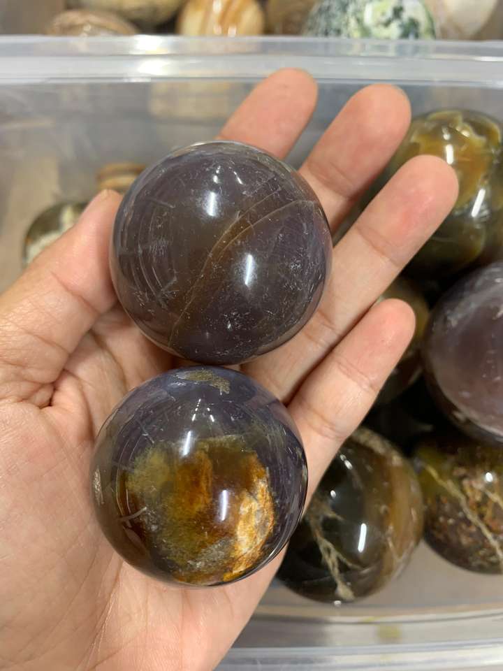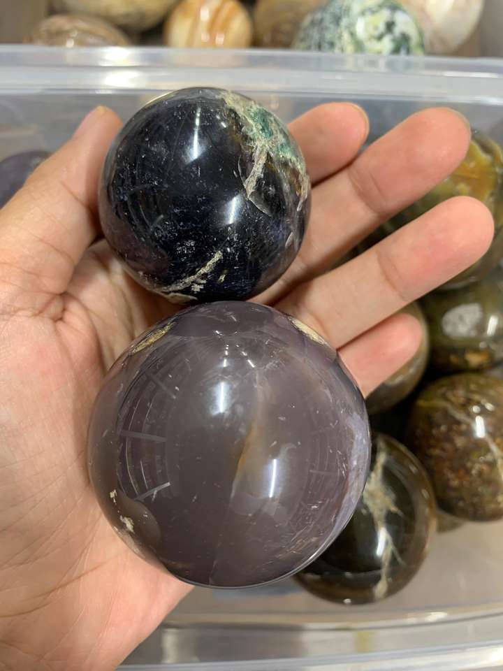 ลูกบอลคริสตัลแคลซิโดนีสีม่วงธรรมชาติระดับพรีเมียม ขัดเงา พร้อมโทนสีลาเวนเดอร์อ่อน หินบำบัด ขนาด 3-5 ซม.