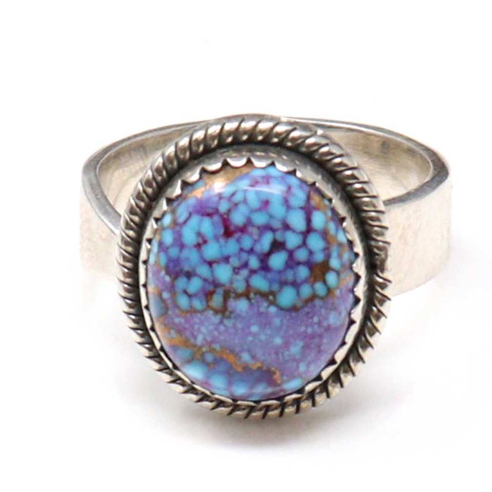 แหวนเทอร์ควอยซ์สีทองแดงสีม่วงธรรมชาติ, แหวนเงิน925, แหวนแฮนด์เมด, แหวนหินรูปไข่, แหวนวงดนตรีที่เรียบง่าย, แหวน Boho