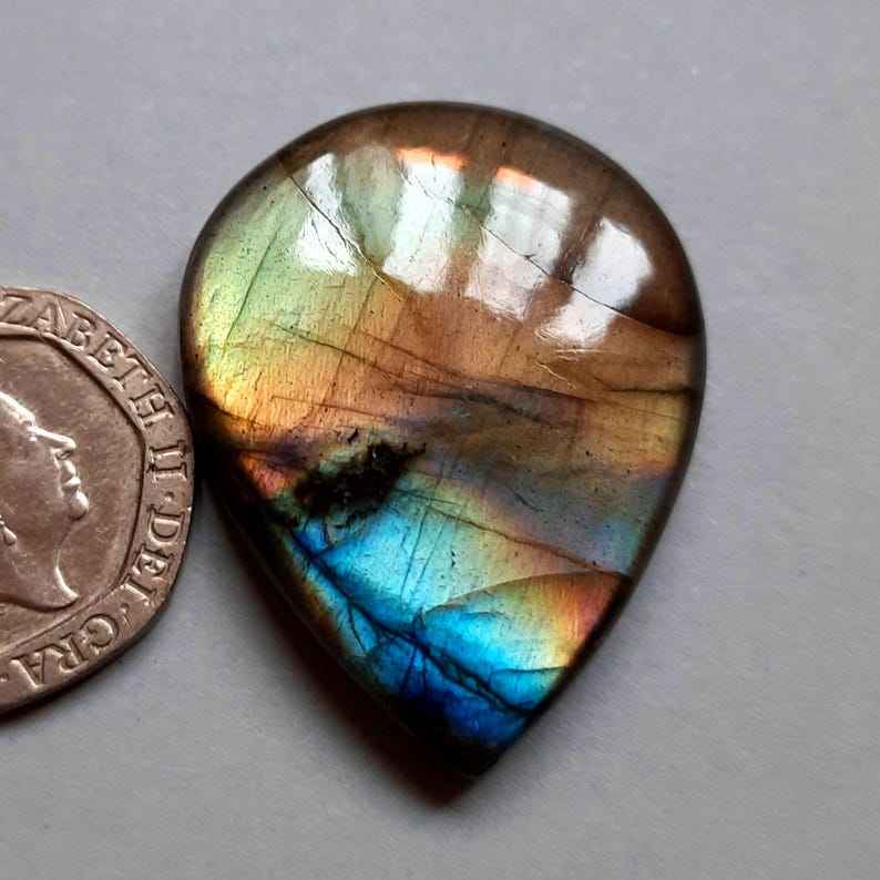 พลอยลาบราโดไรต์สีม่วงธรรมชาติทรงหลังเบี้ย สำหรับทำเครื่องประดับขัดเงาด้วยมือ ของขวัญสำหรับผู้หญิงและผู้ชาย