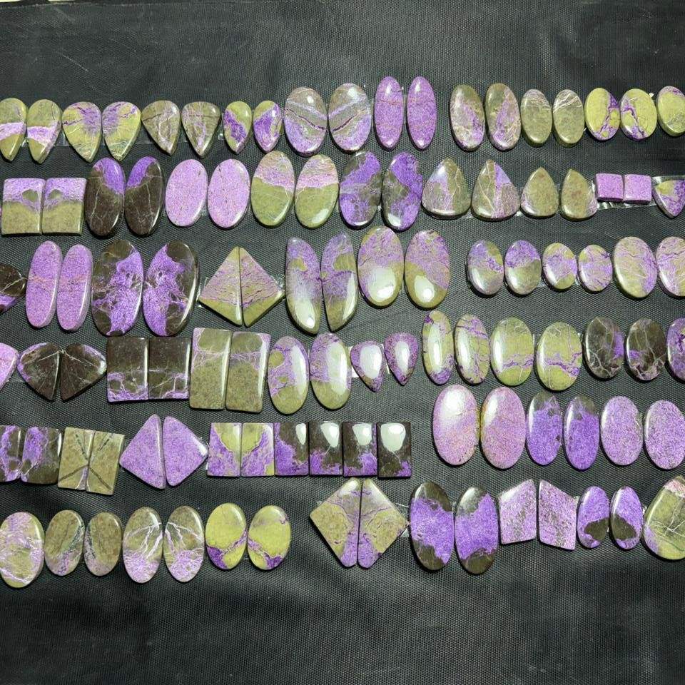 พลอยสีม่วงธรรมชาติเกรด AAA สำหรับทำเครื่องประดับอัญมณีสีเขียวคู่ในรูปทรงผสม