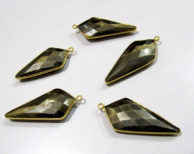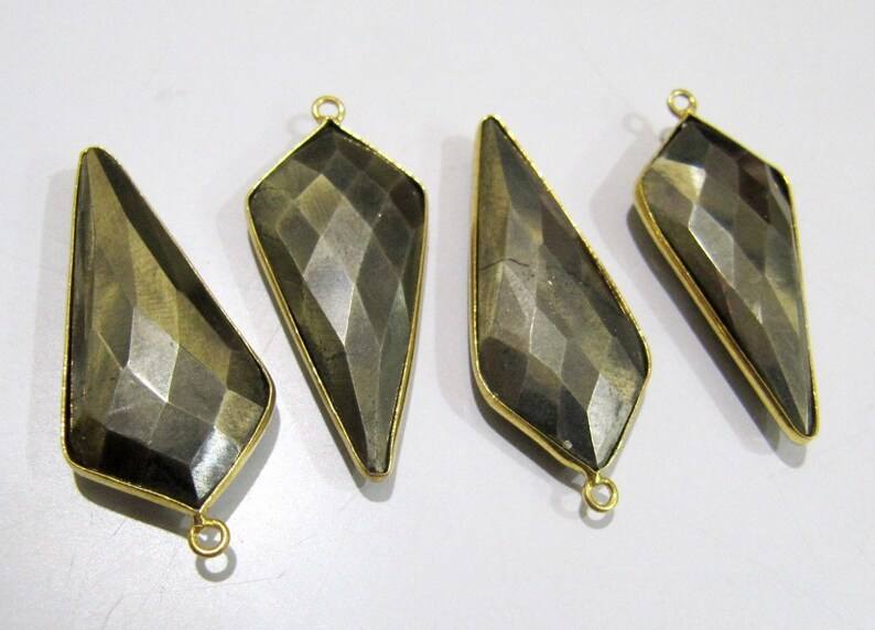 คุณภาพสูงทำด้วยมือจากแร่ไพไรต์ธรรมชาติ briolette แบบเหลี่ยมเพชรพลอยหัวลูกศร15X35มม. เสน่ห์ตัวเชื่อมต่อหัวลูกศรห่วงเดียวจี้ทองทองเหลือง