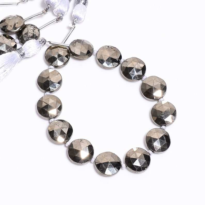 Natural Pyrite Faceted Coin Shape Loose Gemstone Beads Strands 10mm Large Hole Beads for Jewelry Making From Indian Manufacturer