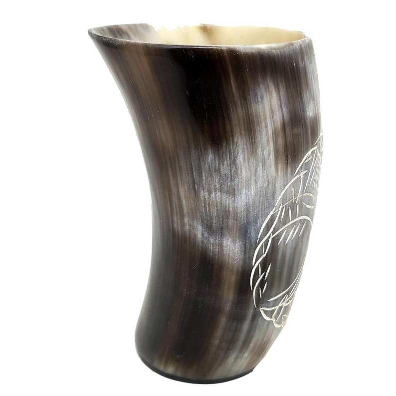 แก้วเบียร์ทำมือจากเขาสัตว์ธรรมชาติ แกะสลักลายอย่างประณีต ใช้งานได้ยาวนาน เหมาะสำหรับงานปาร์ตี้ สไตล์ไวกิ้ง