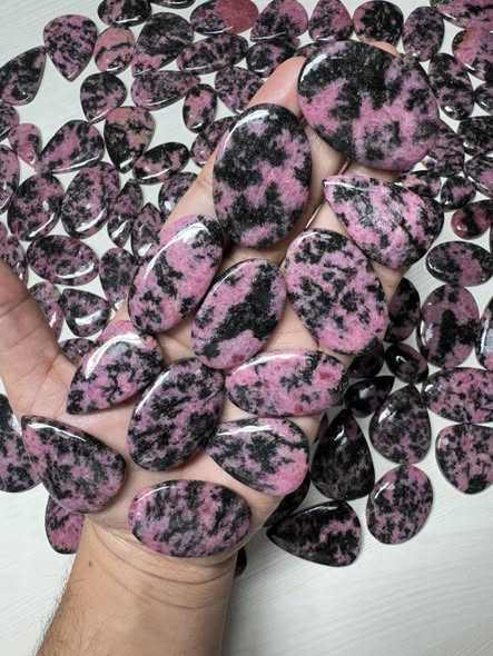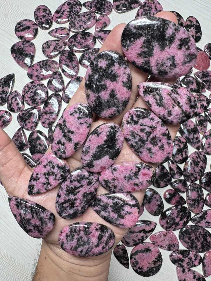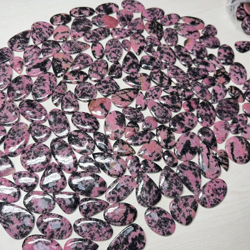 พลอยโรโดโครไซต์สีชมพูขาวธรรมชาติทรงหลังเบี้ย คุณภาพสูง ราคาขายส่ง งานแฮนด์เมดสำหรับทำเครื่องประดับ