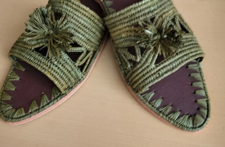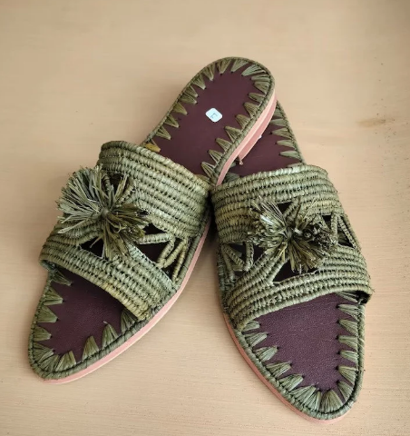 รองเท้าแตะ Raffia ธรรมชาติหลากสี, รองเท้าสตรีสไตล์โมร็อกโก, รองเท้าทอมือจากผ้า Raffia Babouche