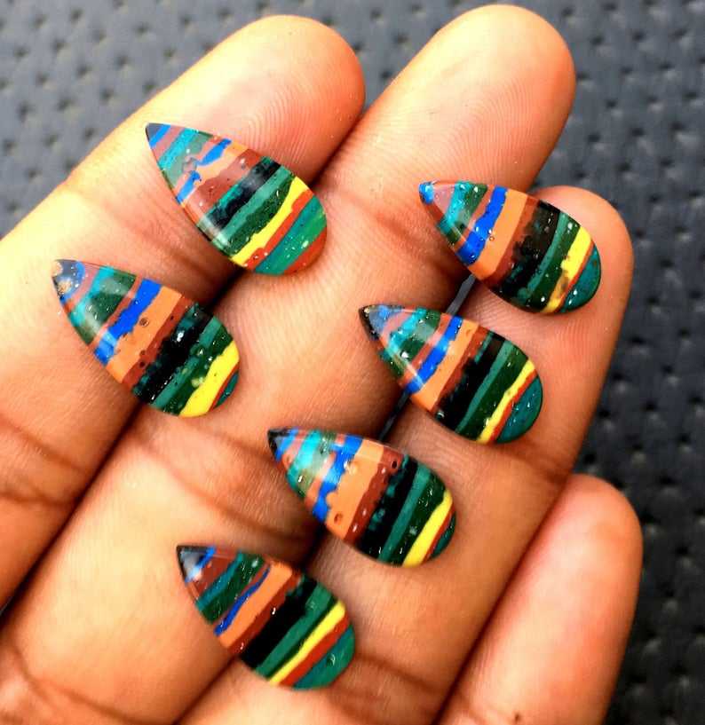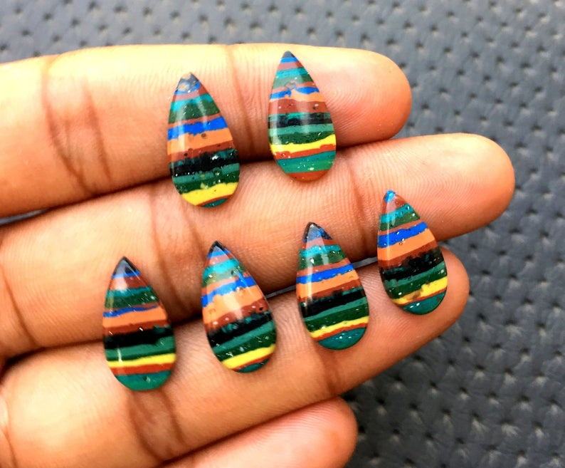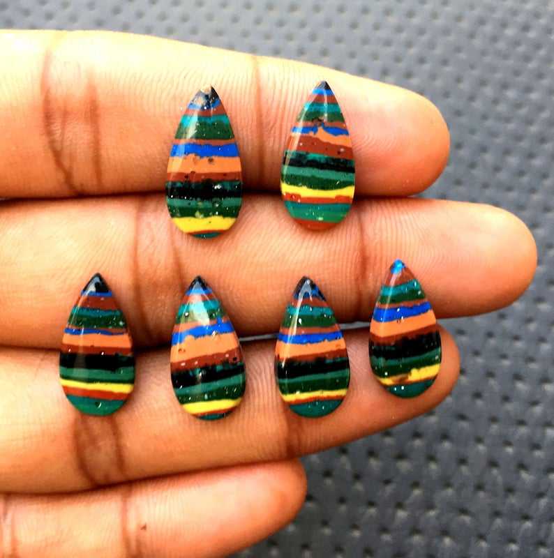 ลูกปัดพลอยธรรมชาติคุณภาพสูงเกรดพรีเมียม รูปทรงลูกแพร์ เรียบเนียน สีรุ้ง คาโบชอง ขนาด 9x17 มม. ขายส่ง