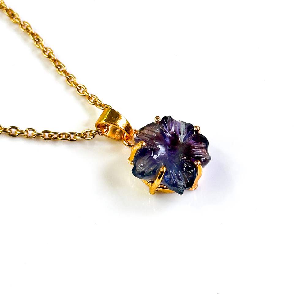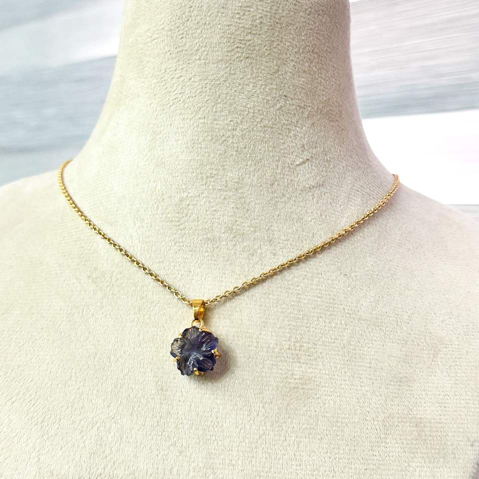 จี้ห้อยคอรูปดอกไม้ ฟลูออไรต์สีรุ้งธรรมชาติ