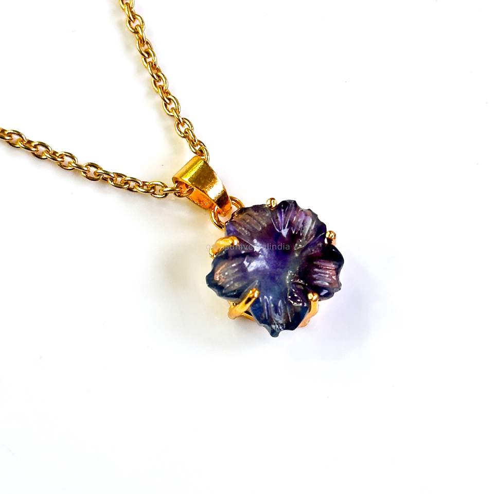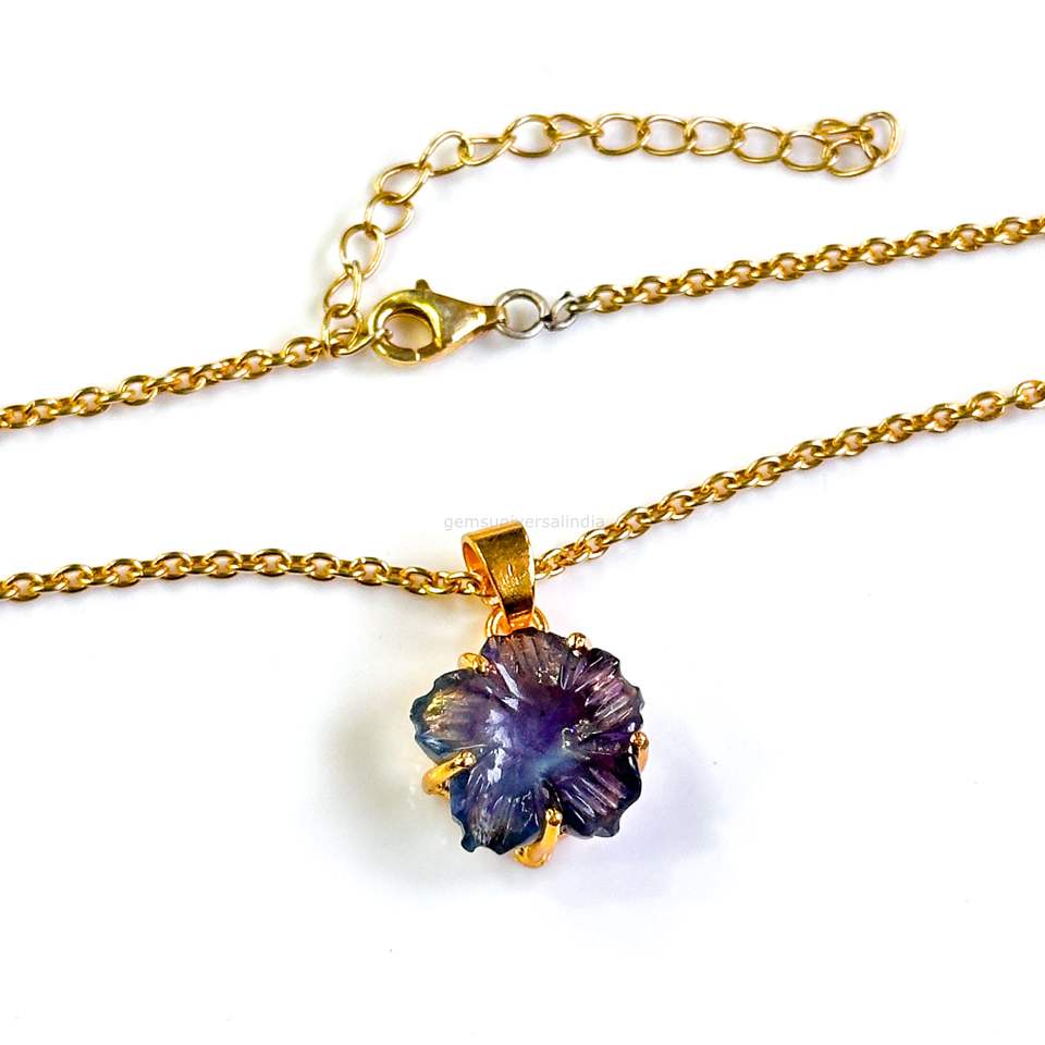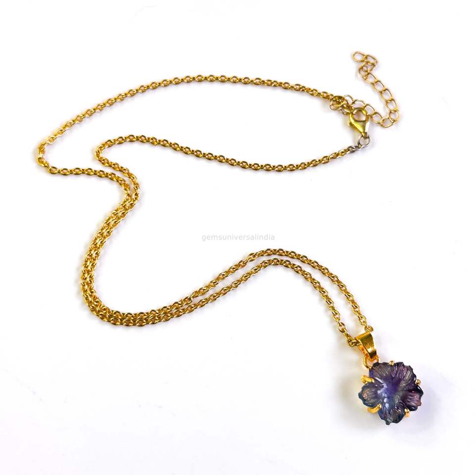 จี้รูปดอกไม้ฟลูออไรต์สีรุ้งธรรมชาติ สร้อยคอคริสตัลแกะสลักรูปดอกไม้ สำหรับผู้หญิง ของขวัญวันเกิด เครื่องประดับขายส่ง