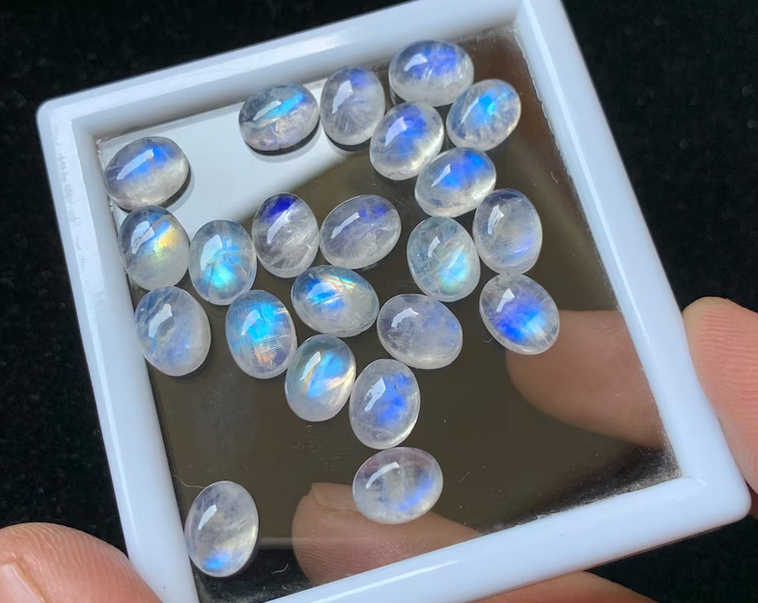 Natural Rainbow Moonstone 10x14mm Oval Shape Flat Back Loose Cabochon Gemstone for Jewelry Making All Sizes Available
