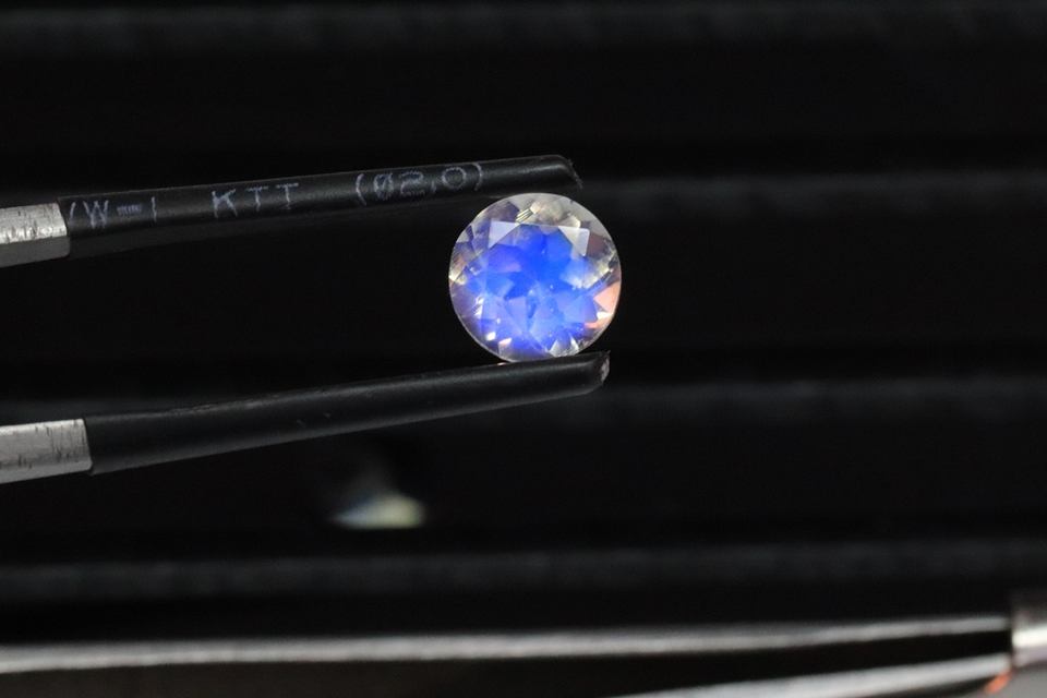 มูนสโตนสีรุ้งธรรมชาติ ขนาด 7 มม. รูปทรงกลม พลอยหลวม สีฟ้าประกายรุ้ง ราคาขายส่ง