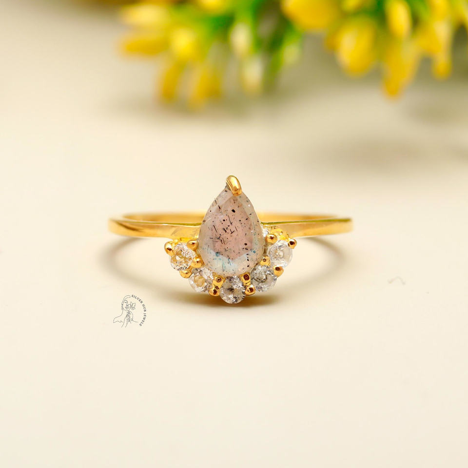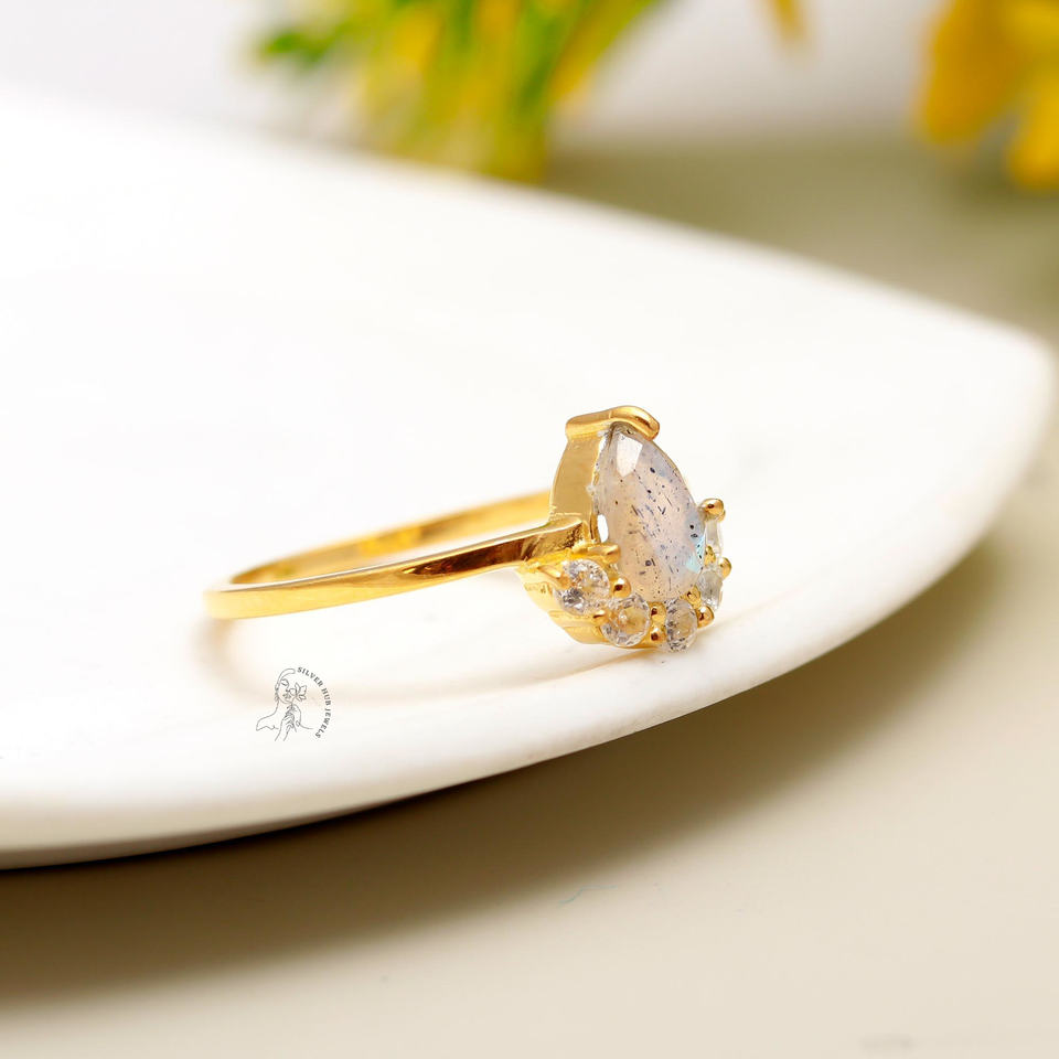 แหวนเงินแท้สีรุ้งธรรมชาติประดับ925มูนสโตนทำมือแหวนเงินแท้สีรุ้งไฟสีฟ้าเครื่องประดับแหวนสำหรับทุกเพศ