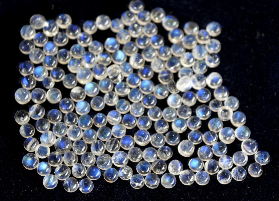 พลอยมูนสโตนสีรุ้งธรรมชาติทรงกลมขนาด4มม. ทรงแบนราบ-พลอยสีกรมท่าสีรุ้งทรงหลวม