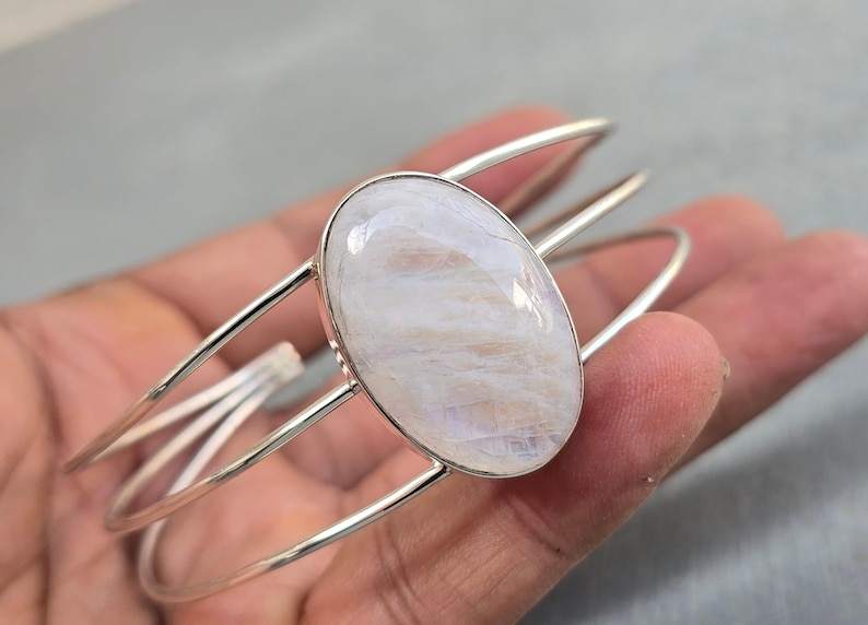 กำไลข้อมือมูนสโตนสีรุ้งธรรมชาติ สไตล์วินเทจหรูหรา เงินแท้ 925 ปรับขนาดได้ เครื่องประดับสวยสง่าสำหรับผู้หญิง