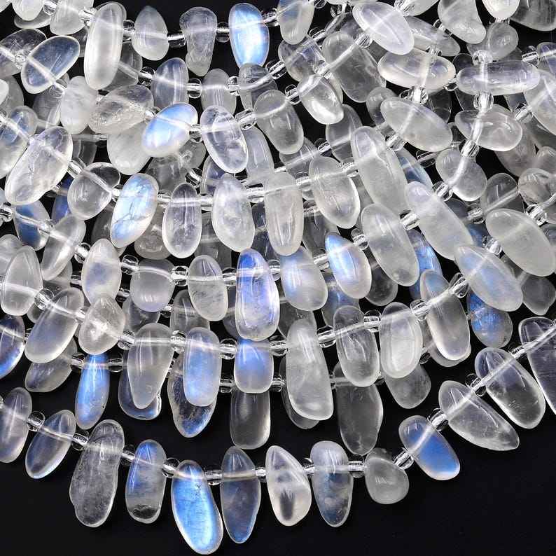 ลูกปัดมูนสโตนสีรุ้งธรรมชาติ รูปทรงอิสระ รูปไข่ แบบหยดน้ำ เจาะรูด้านบน สำหรับทำเครื่องประดับ