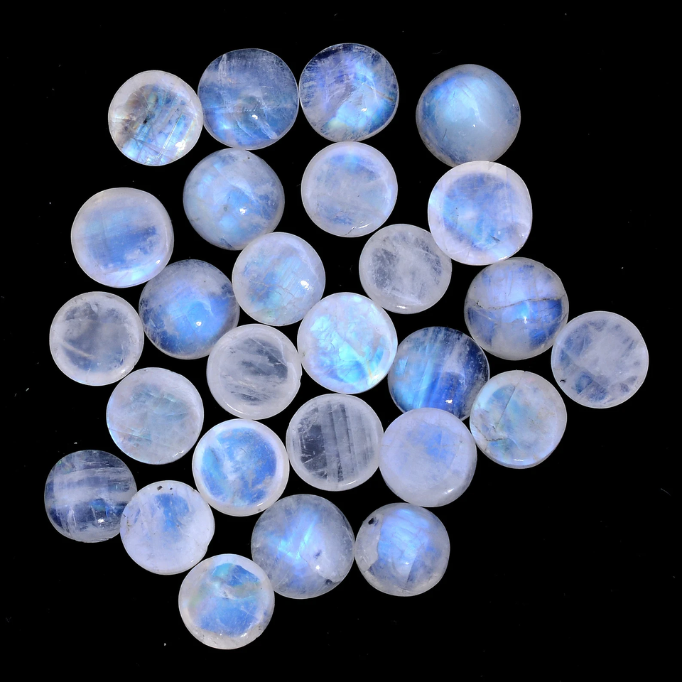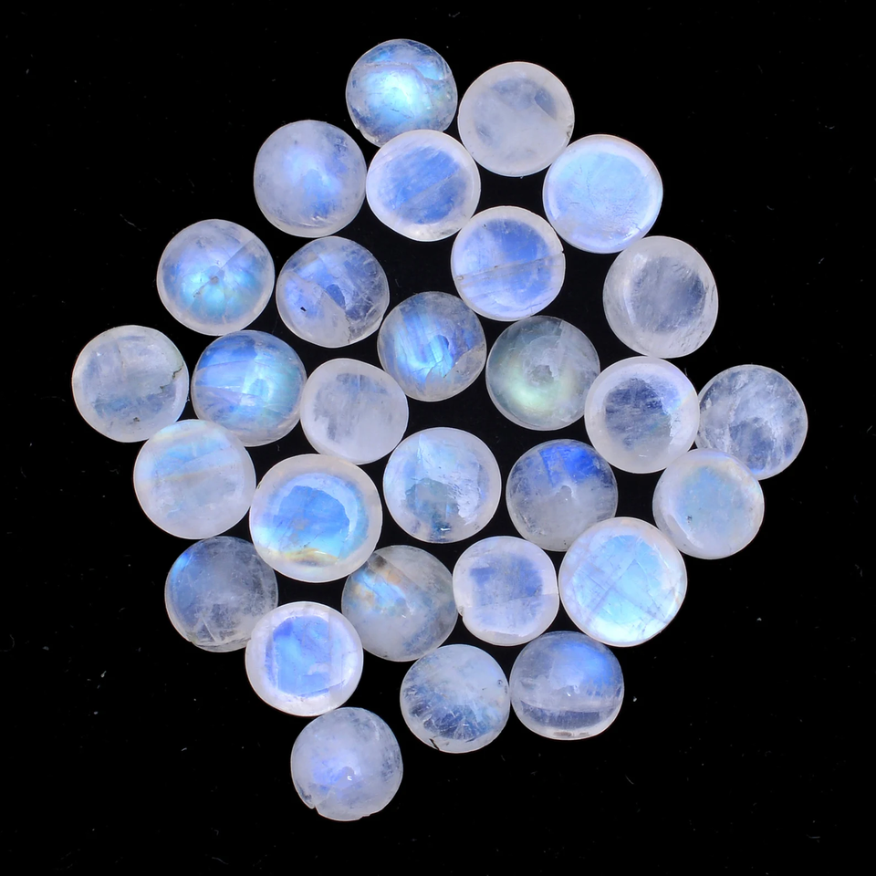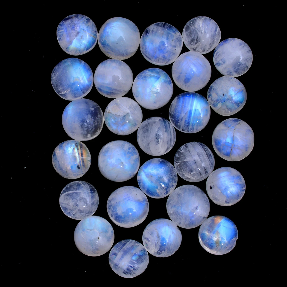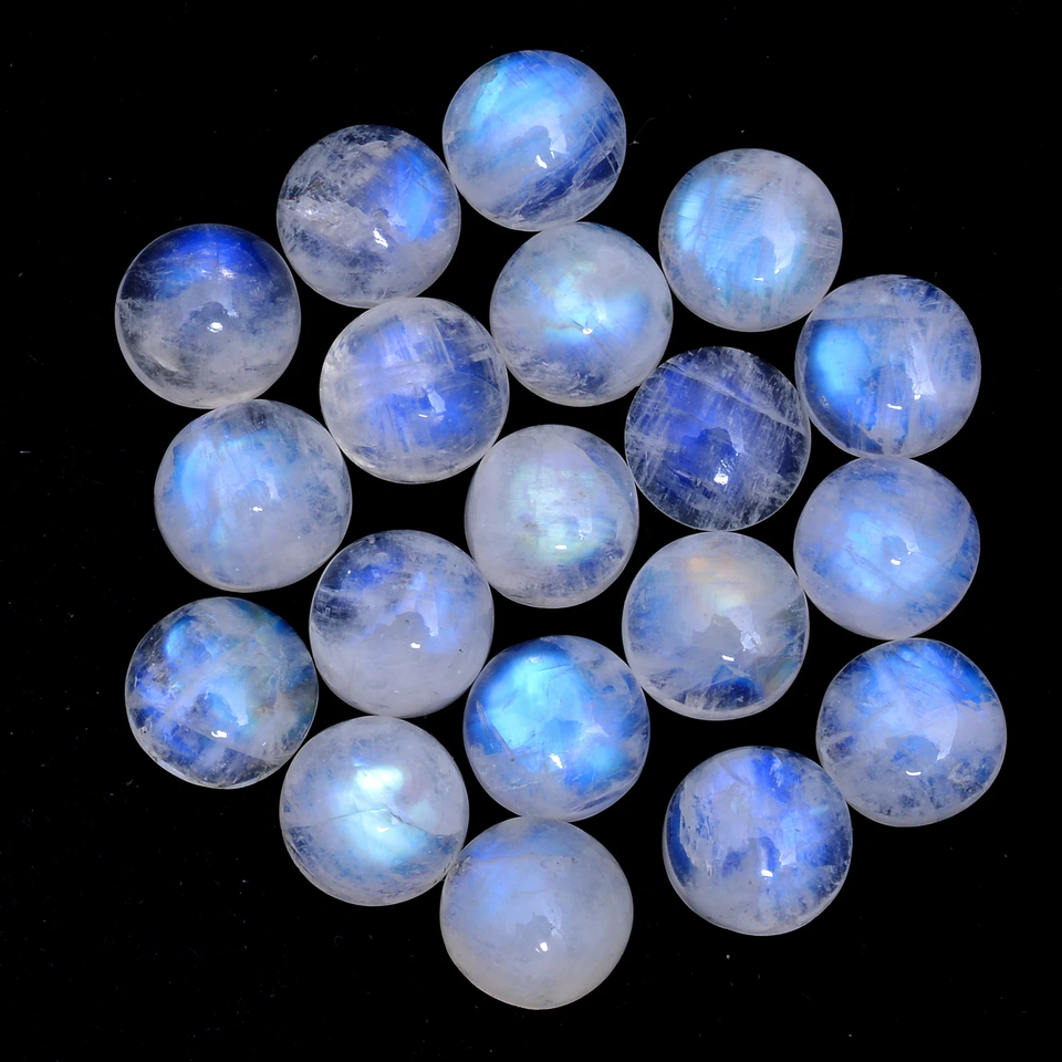 พลอยสีรุ้งธรรมชาติพลอยมูนสโตนสีฟ้า10มม. พลอยพลอยสังเคราะห์ทรงหลวมผิวเรียบสำหรับเครื่องประดับ