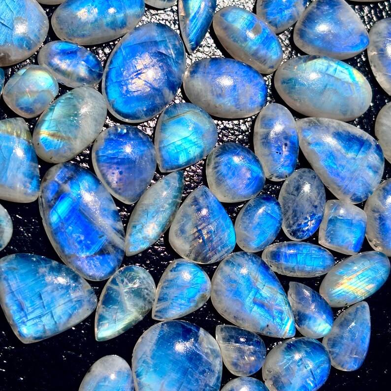 Natural Rainbow Moonstone Cabochon Lot Top Quality Wholesale White Blue Flash Gemstone for Jewelry Making