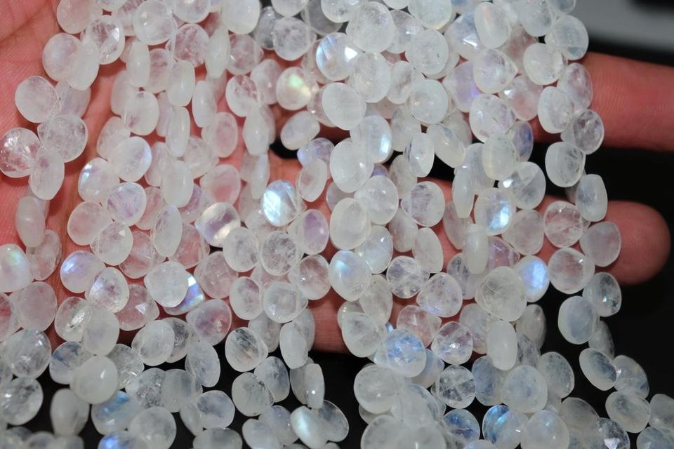 ชื่อสินค้า:ลูกปัดหินมูนสโตนสีรุ้งทรงหัวใจเจียระไน