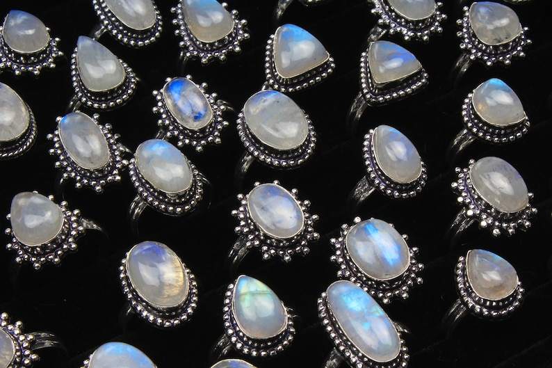 ชื่อผลิตภัณฑ์:แหวนชุบเงินลายมูนสโตนสีน้ำเงิน