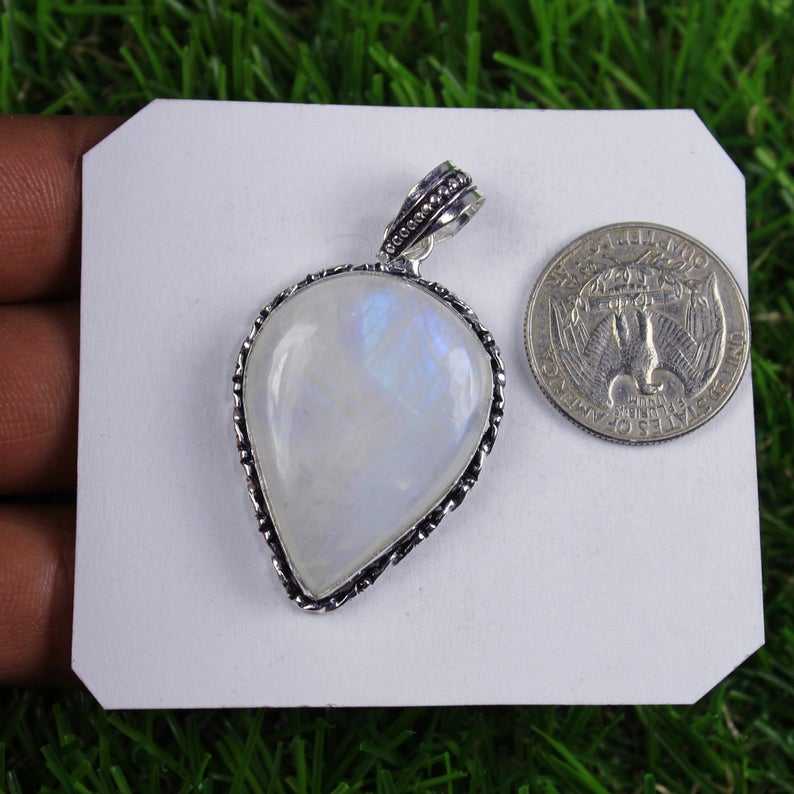 มูนสโตนสีรุ้งธรรมชาติพลอยสีเงินจี้ทำด้วยมือ AAA พลอยมูนสโตนเครื่องประดับสร้อยคอซัพพลาย