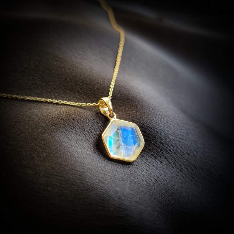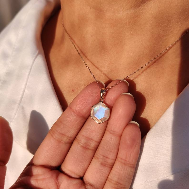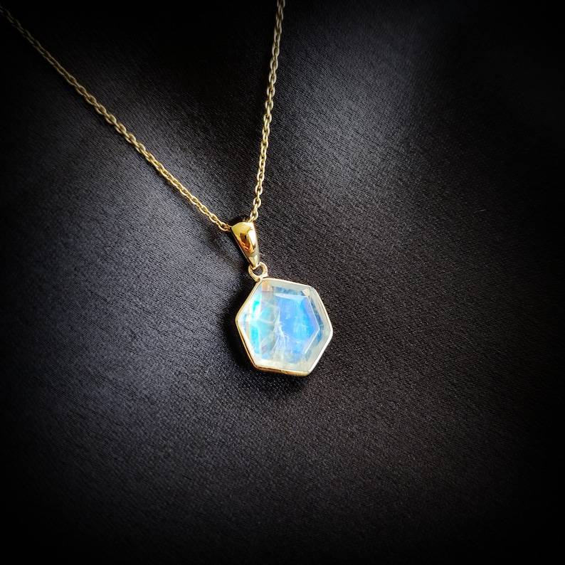 จี้ทอง14K ทรงหกเหลี่ยมสีรุ้งธรรมชาติจี้ทองขนาด11x11มม. สำหรับผู้หญิงจากโรงงานขายส่ง