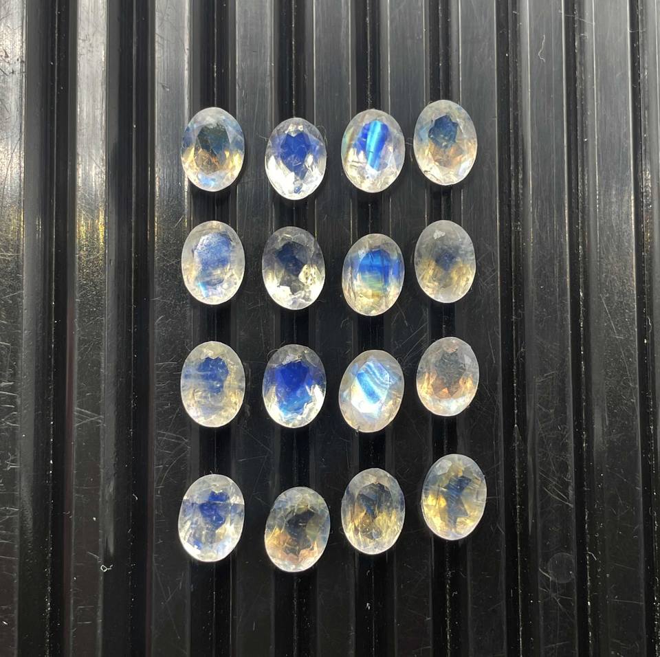 มูนสโตนสีรุ้งธรรมชาติ รูปไข่ ขนาด 6*8 มม. รับรองโดย IGI สำหรับทำเครื่องประดับ