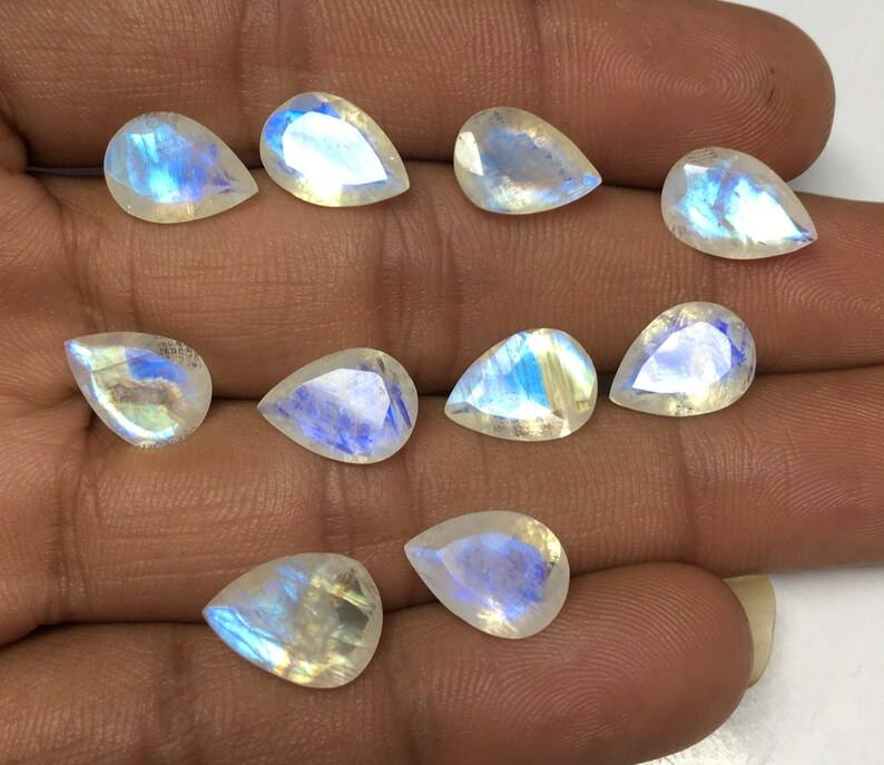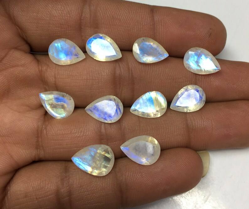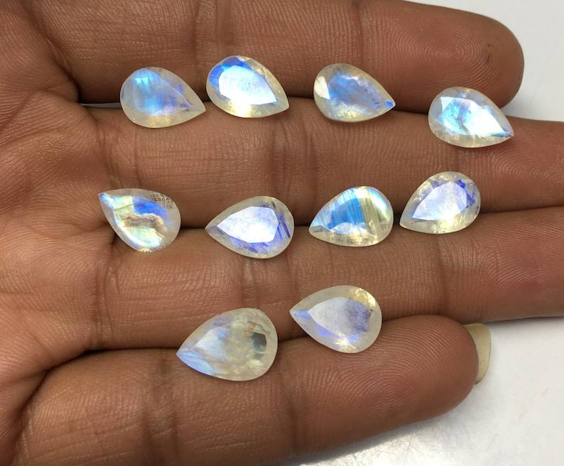 พลอยมูนสโตนสีรุ้งธรรมชาติ รูปทรงลูกแพร์ เจียระไนเหลี่ยม ด้านหลังแหลม ขนาดปรับเทียบแล้ว สำหรับทำเครื่องประดับ พลอยเม็ดเดี่ยว