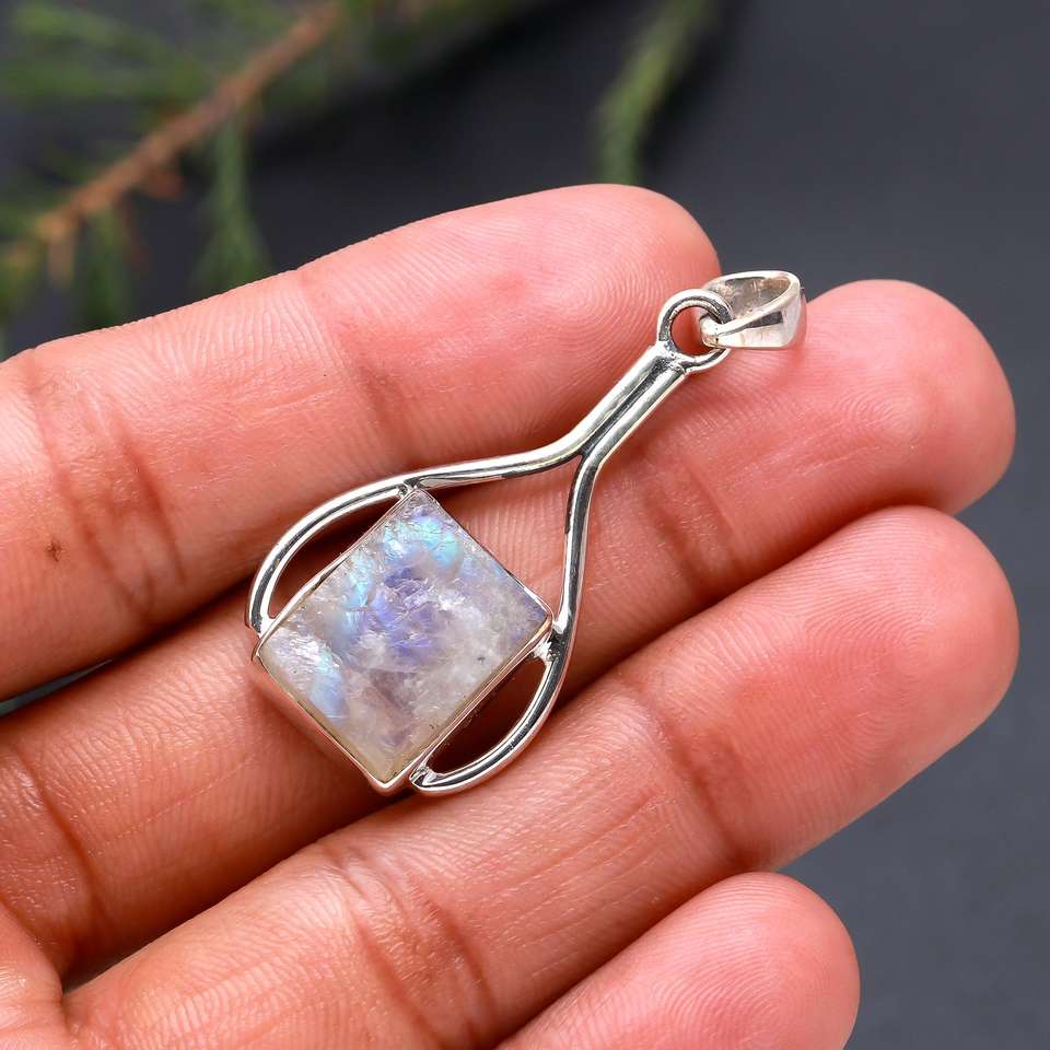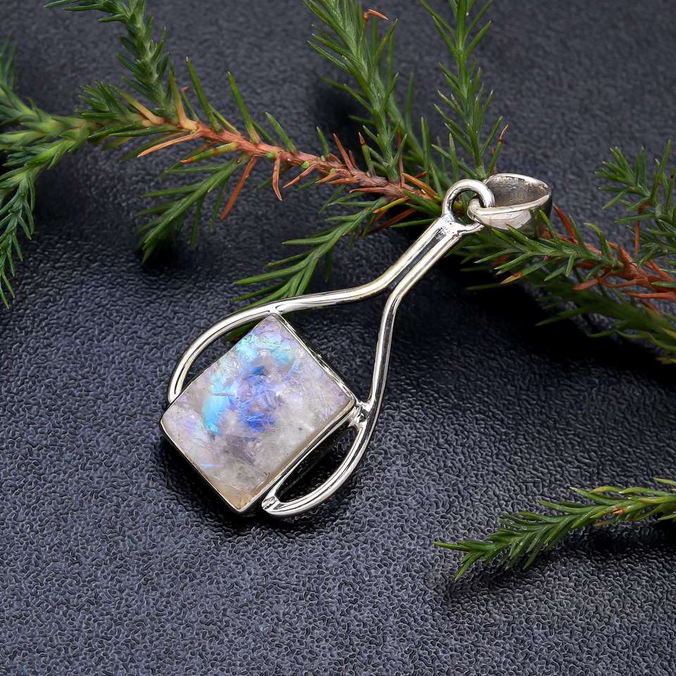จี้สร้อยคอหินมูนสโตนสีรุ้งธรรมชาติ เงินแท้ 925 ขายส่ง งานแฮนด์เมด สไตล์โบฮีเมียน เครื่องประดับเงินแท้ทำมือ