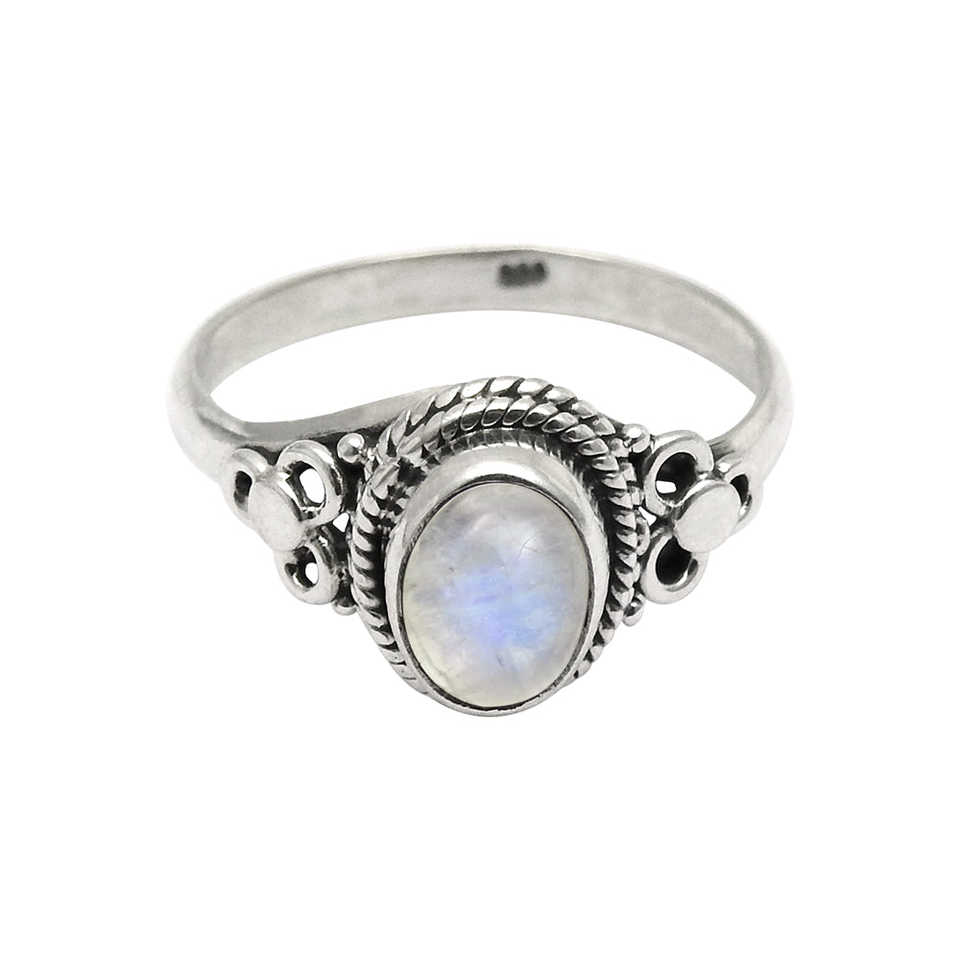 แหวนมูนสโตนสีรุ้งธรรมชาติ เงินแท้ 925 ประดับพลอยทรงกลม สไตล์โบฮีเมียน ราคาสมเหตุสมผล