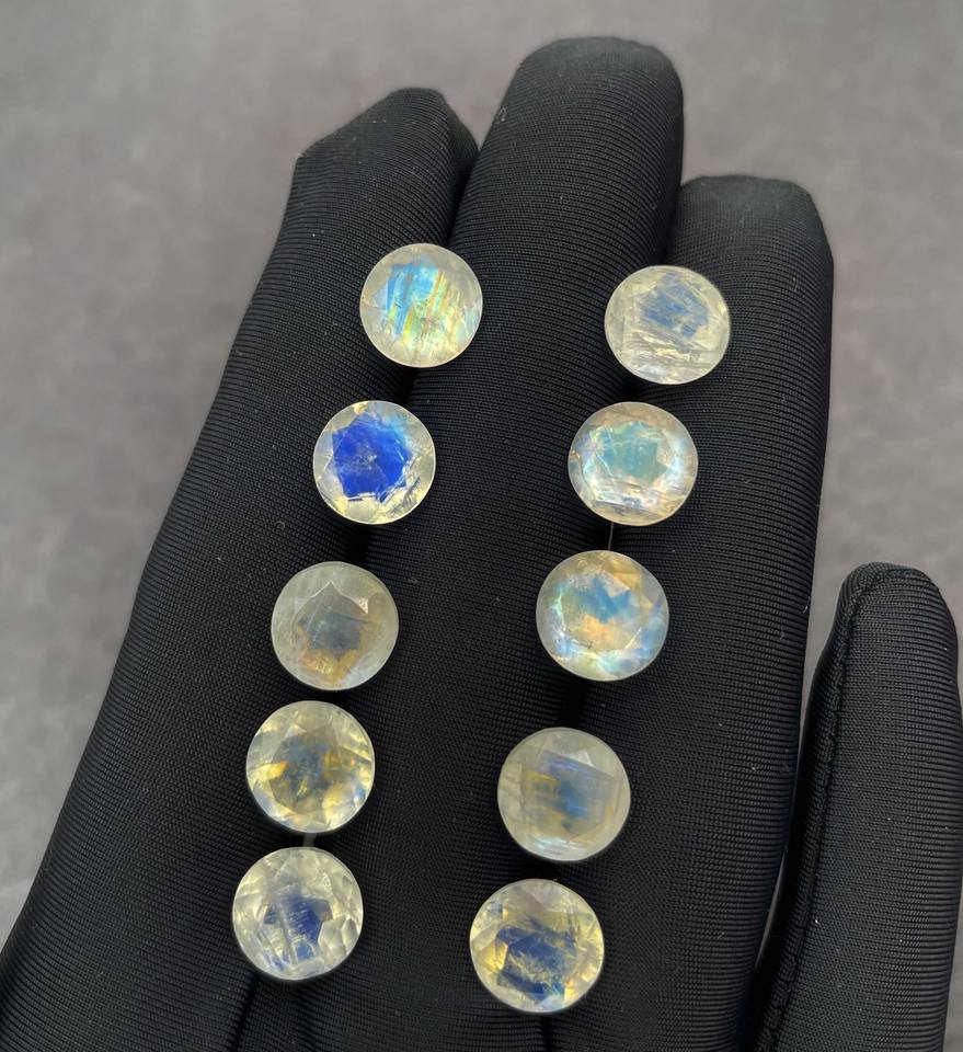 พลอยมูนสโตนสีรุ้งธรรมชาติทรงกลมขนาด 9 มม. รับรองโดย IGI สำหรับทำเครื่องประดับต่างหู จี้