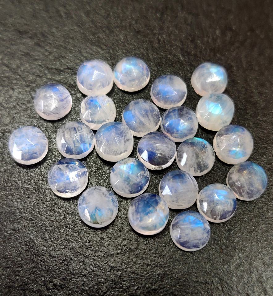 Natural Rainbow Moonstone Round Rose Cut 3mm Faceted -Good Blue Flashy Good Quality