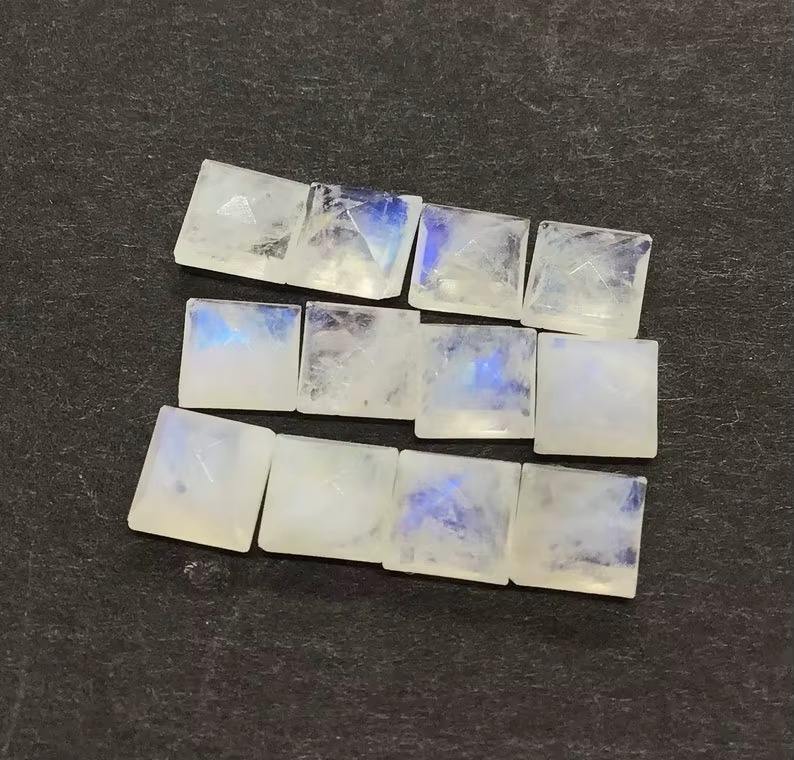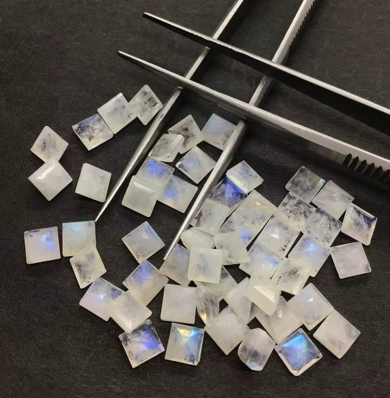 หินมูนสโตนสีรุ้งธรรมชาติพลอยทรงสี่เหลี่ยมตัดหลวม4-20มม. ตัดหินมูนสโตนสำหรับทำเครื่องประดับ