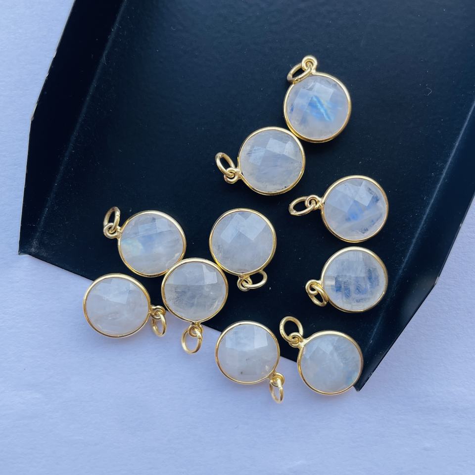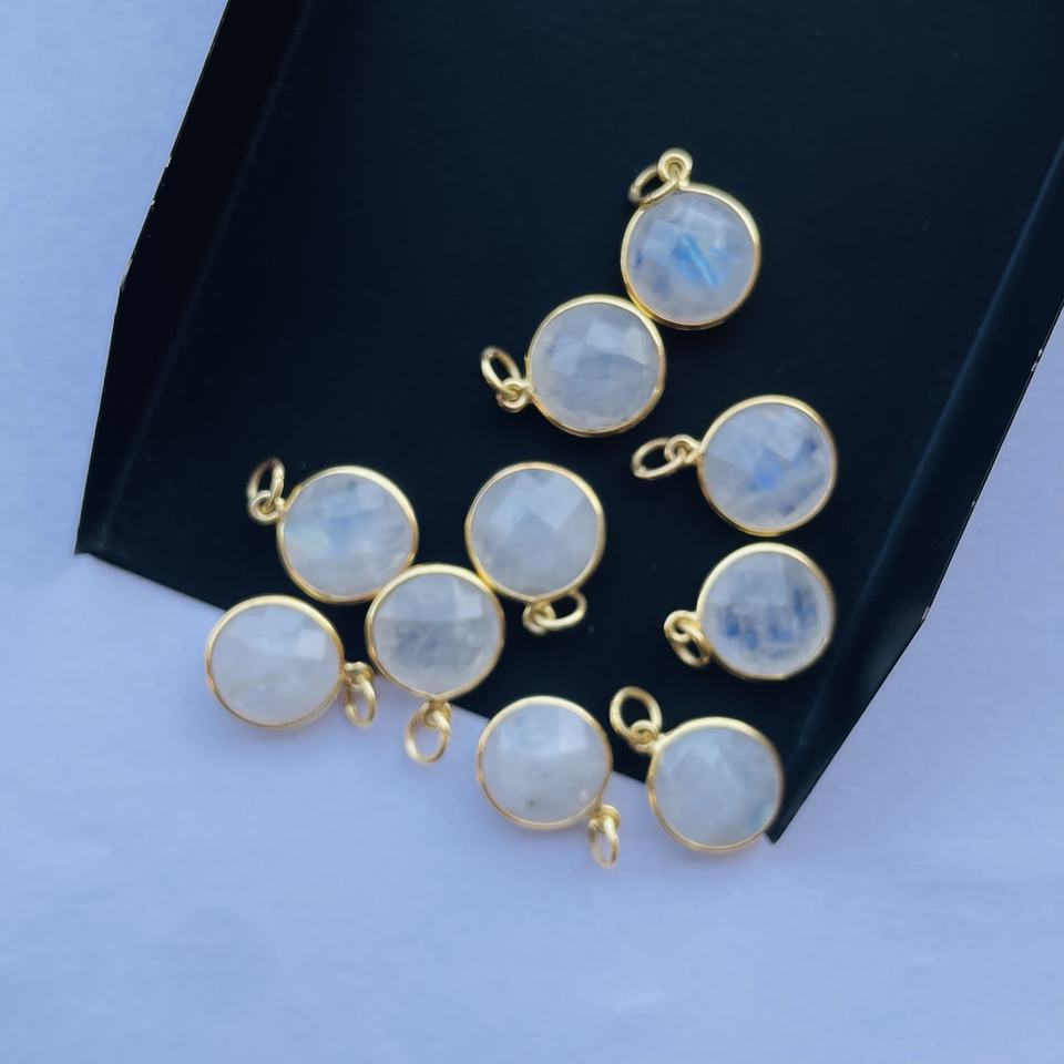 หินมูนสโตนสีรุ้งธรรมชาติ BEZEL 925 เงินสเตอร์ลิงจี้พลอยกลมขายส่งผู้ผลิตเครื่องประดับเครื่องประดับชั้นดี