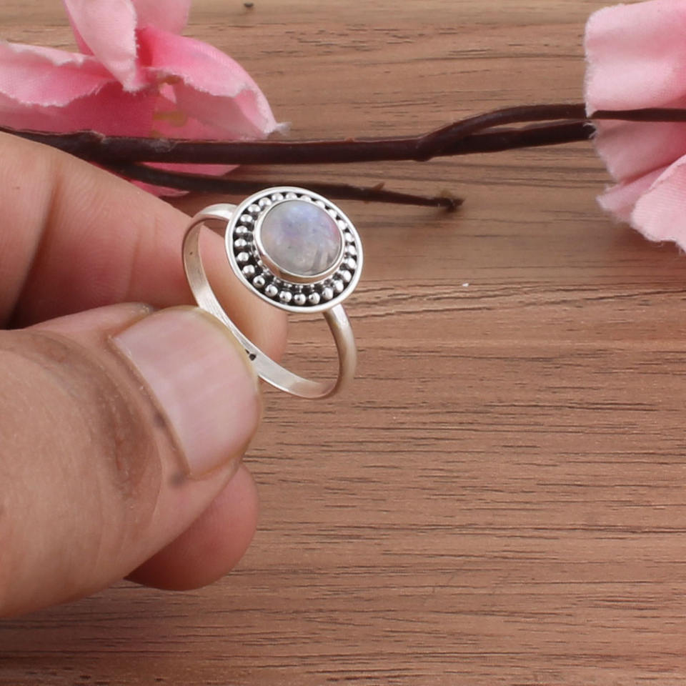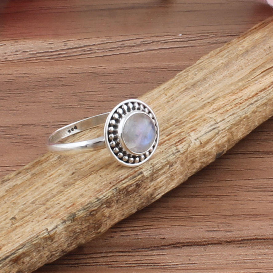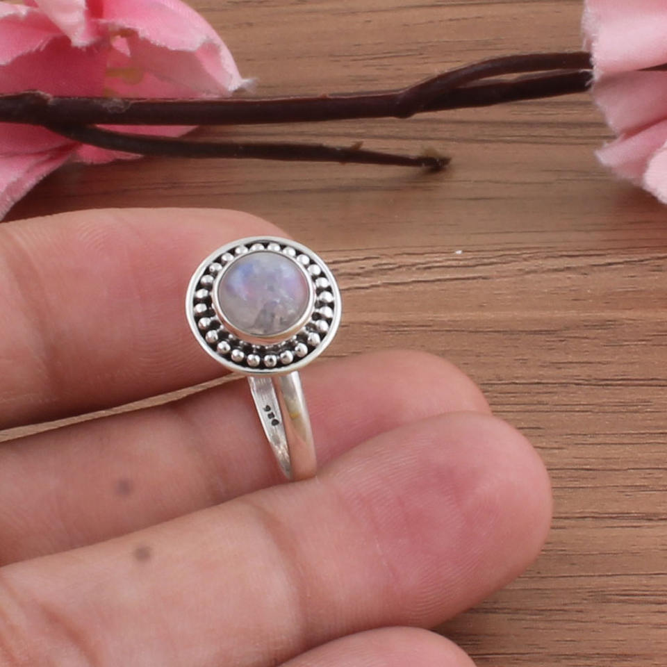 แหวนหมั้นผู้หญิงพลอยมูนสโตนสีรุ้งธรรมชาติ เงินแท้ 925 ประกายสีน้ำเงิน พลอยแท้ เครื่องประดับสำหรับงานปาร์ตี้ ขายส่ง