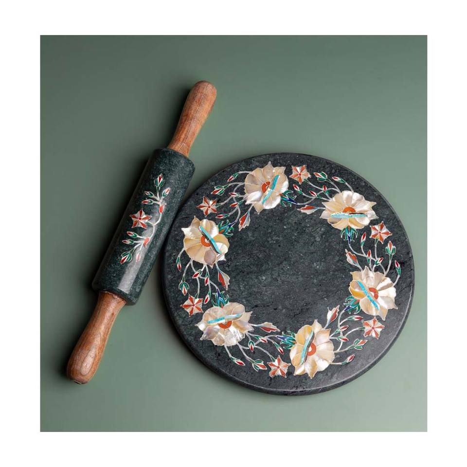 หินสีดำขัดธรรมชาติกับแม่ของดอกไม้มุกฝัง chakla belan สำหรับใช้ในห้องครัวและของตกแต่งบ้าน