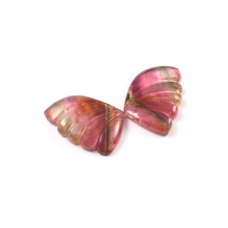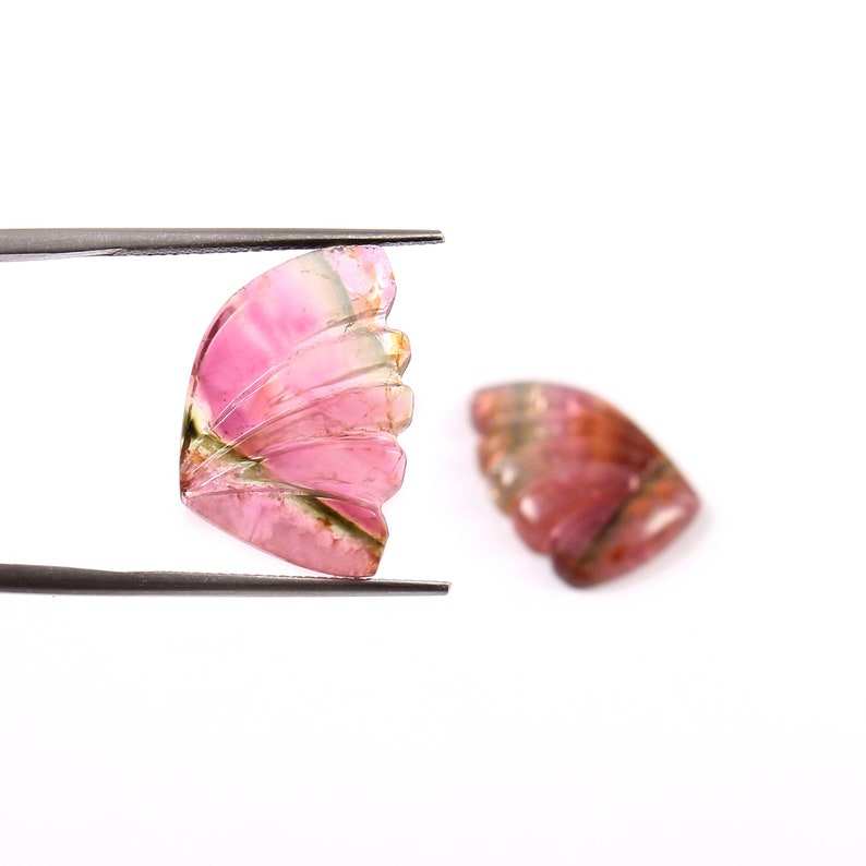 ธรรมชาติหายากสีรุ้งไบโอทัวร์มาลีนมือแกะสลักปีกผีเสื้อขนาด14X21มม. 1คู่20.60กะรัต + AAAA หินแท้และธรรมชาติ