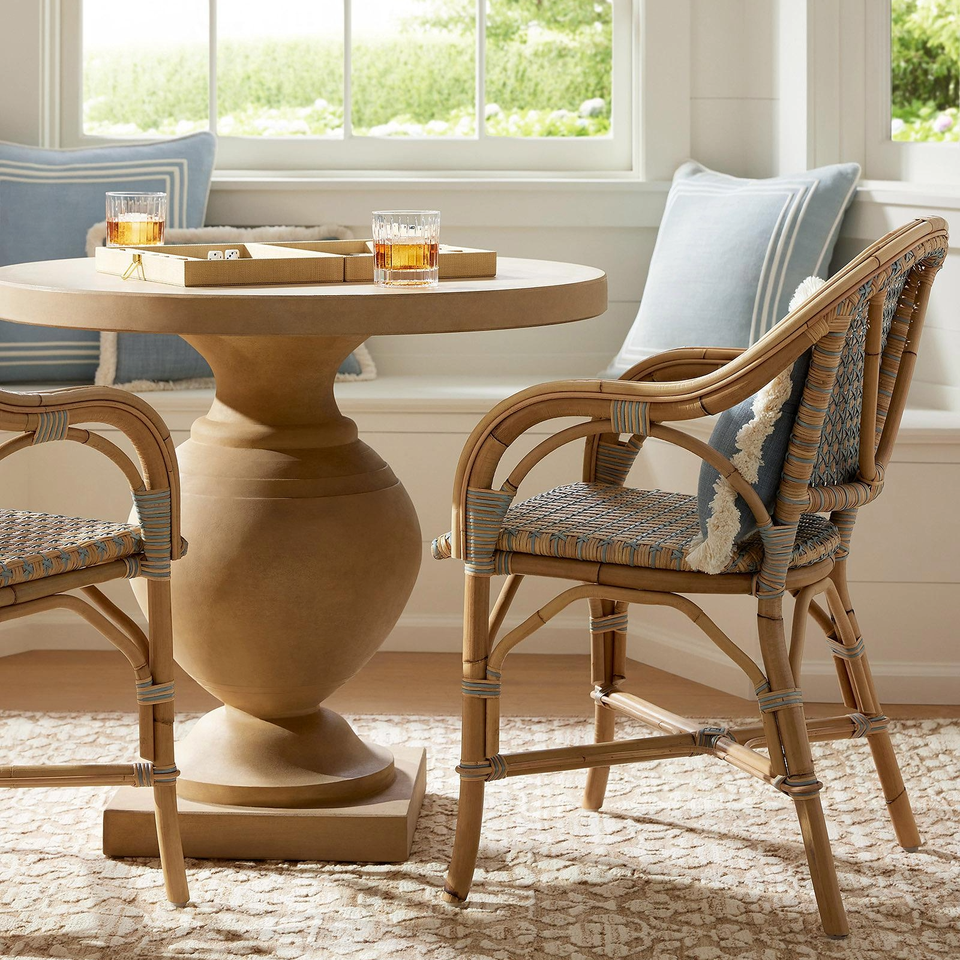 Natural Rattan Armchair Indoor Outdoor Wicker Dining Chair Handmade Rattan Furniture Patio Garden Cafe Restaurant Bistro Seating