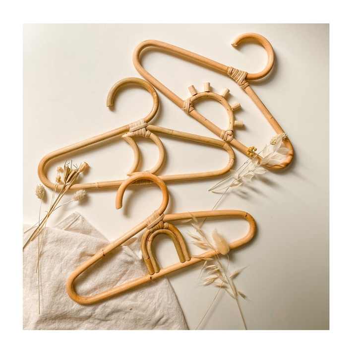 ไม้แขวนเสื้อทารกหวายธรรมชาติไม้แขวนเสื้อโลโก้ที่กำหนดเอง