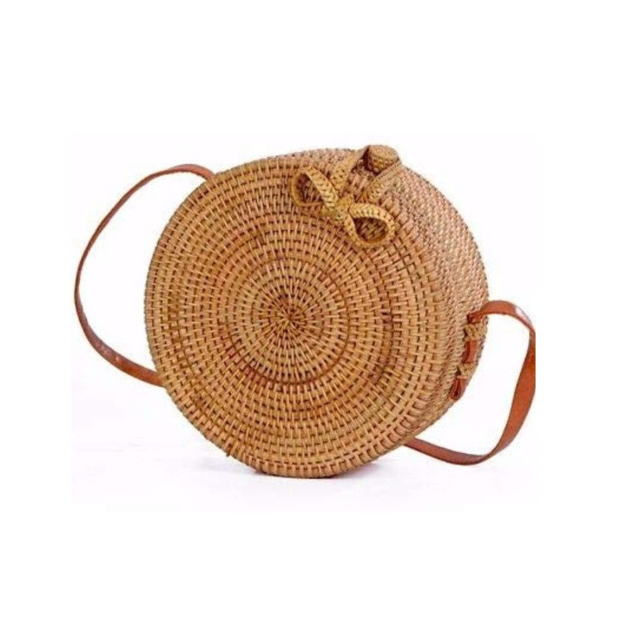 กระเป๋าหวายธรรมชาติทำด้วยมือกระเป๋าฟางสะพายข้างสำหรับผู้หญิงชุดโบฮีเมียนชายหาดแฟชั่นสำหรับฤดูร้อน