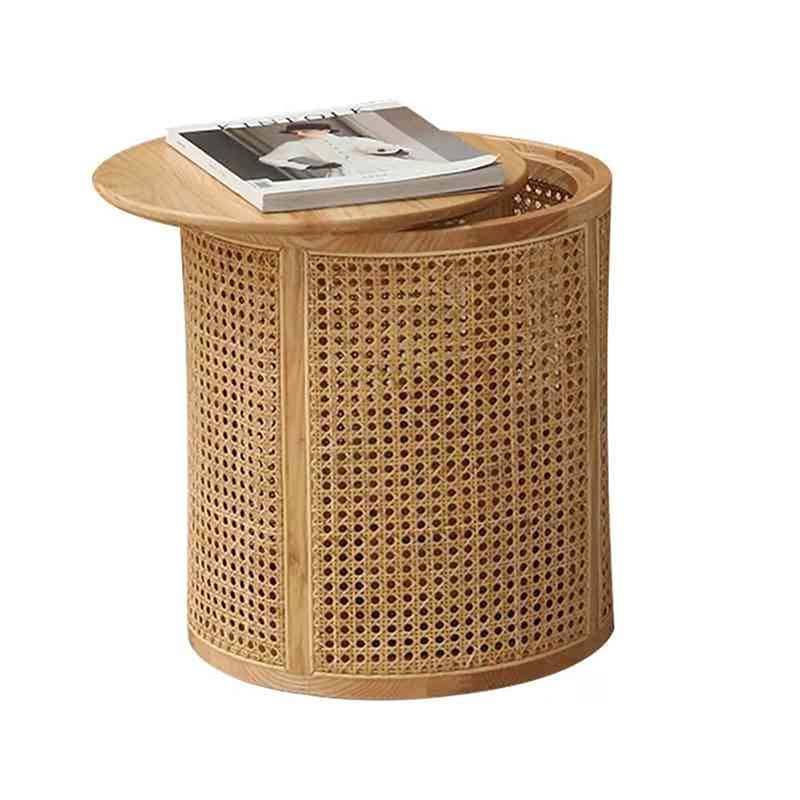 ตะกร้าผ้าหวายธรรมชาติสานด้วยมือ โครงไม้ทรงกลม สำหรับเก็บเสื้อผ้า ของใช้ในบ้าน ห้องนั่งเล่น สไตล์เรียบง่าย