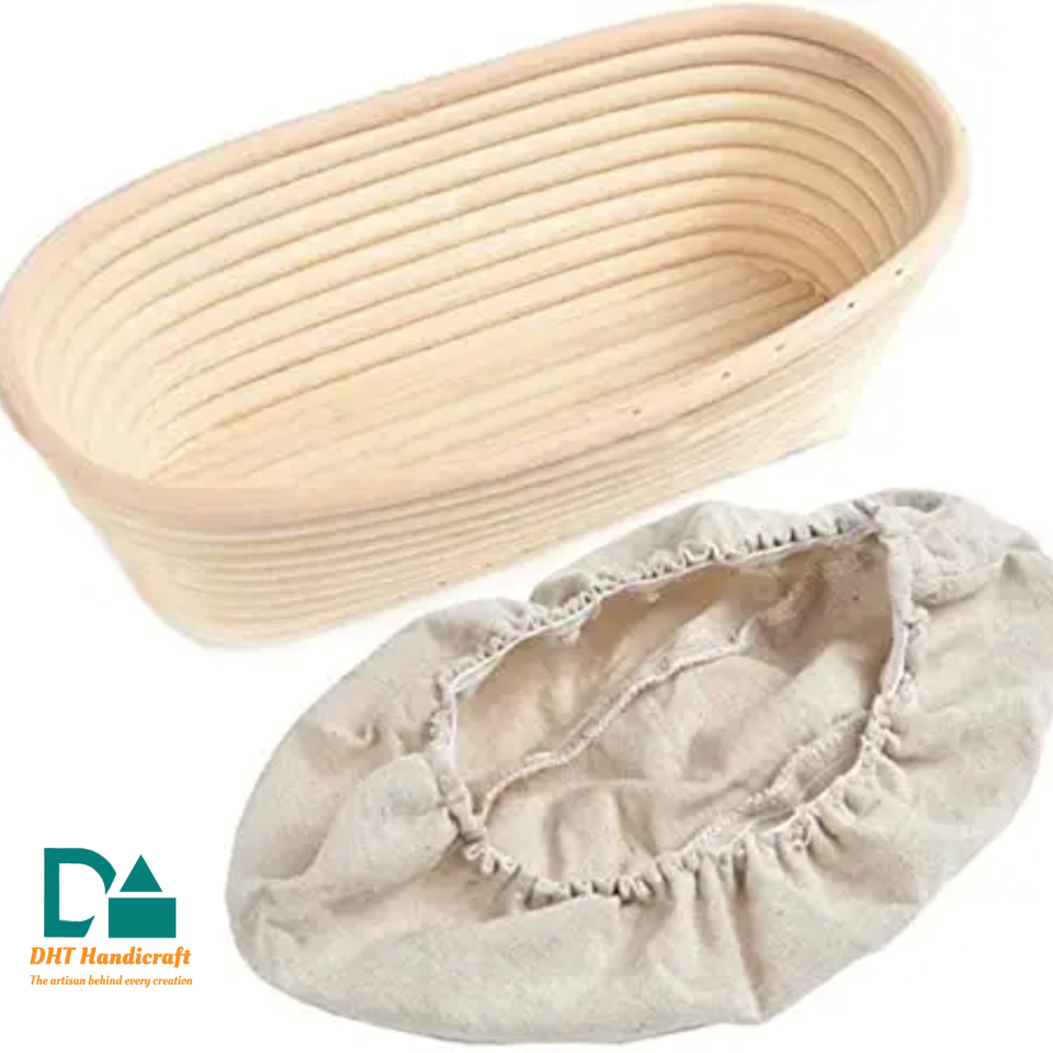 ตะกร้าหวายธรรมชาติรักษ์โลกสำหรับขนมปังซาวโดว์ รูปทรงวงรี พร้อมแผ่นรอง สำหรับการหมักและพักแป้ง รับผลิตตามสั่ง ขายส่ง
