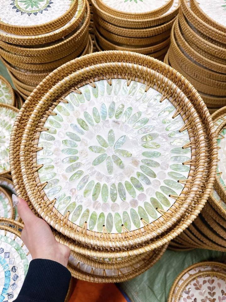 หวายธรรมชาติแกะสลักถาดเคลือบสำหรับการให้บริการถาดที่มีชื่อเสียงในเวียดนามที่ขายดีที่สุด2023