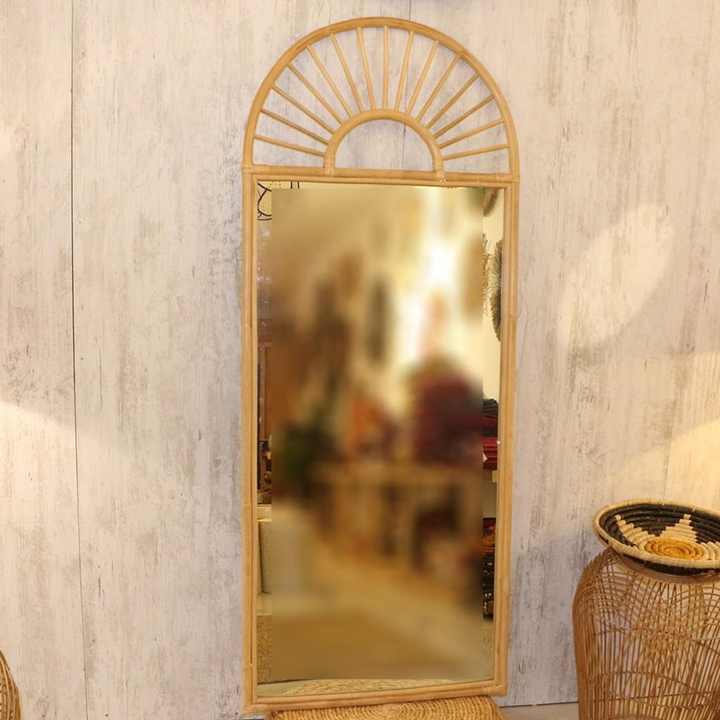 กระจกหวายธรรมชาติทรงพระอาทิตย์ วินเทจ ตกแต่งบ้าน แขวนผนัง