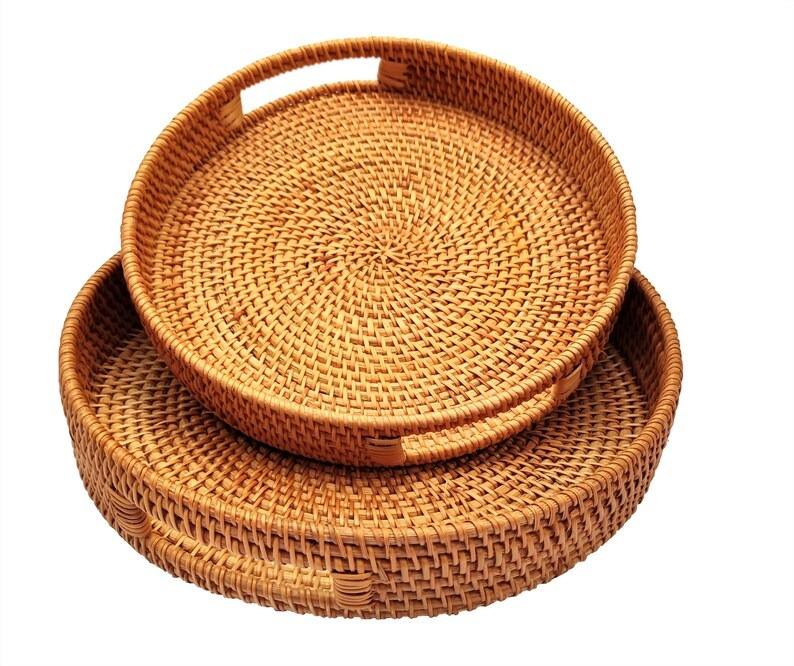 ถาดเสิร์ฟหวายธรรมชาติ รูปทรงสี่เหลี่ยมมุมโค้ง ดีไซน์หรูหรา ถาดเดี่ยวสำหรับใส่ชา อาหาร จัดเก็บในครัว ห้องอาหาร ใช้สำหรับเสิร์ฟในบ้าน