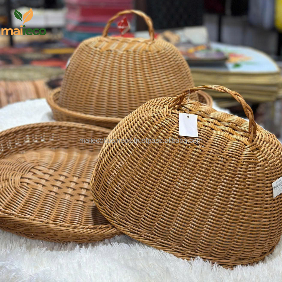 คำอธิบาย:ถาดหวายธรรมชาติพร้อมฝาครอบอาหารกันฝุ่น