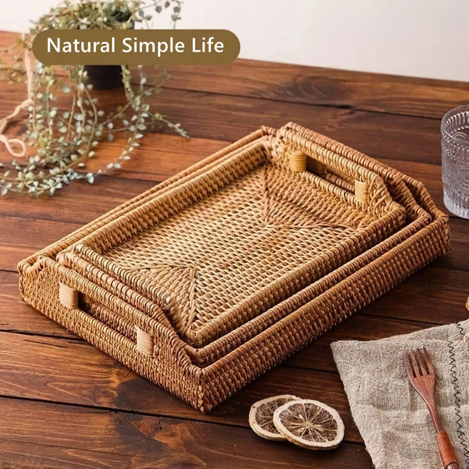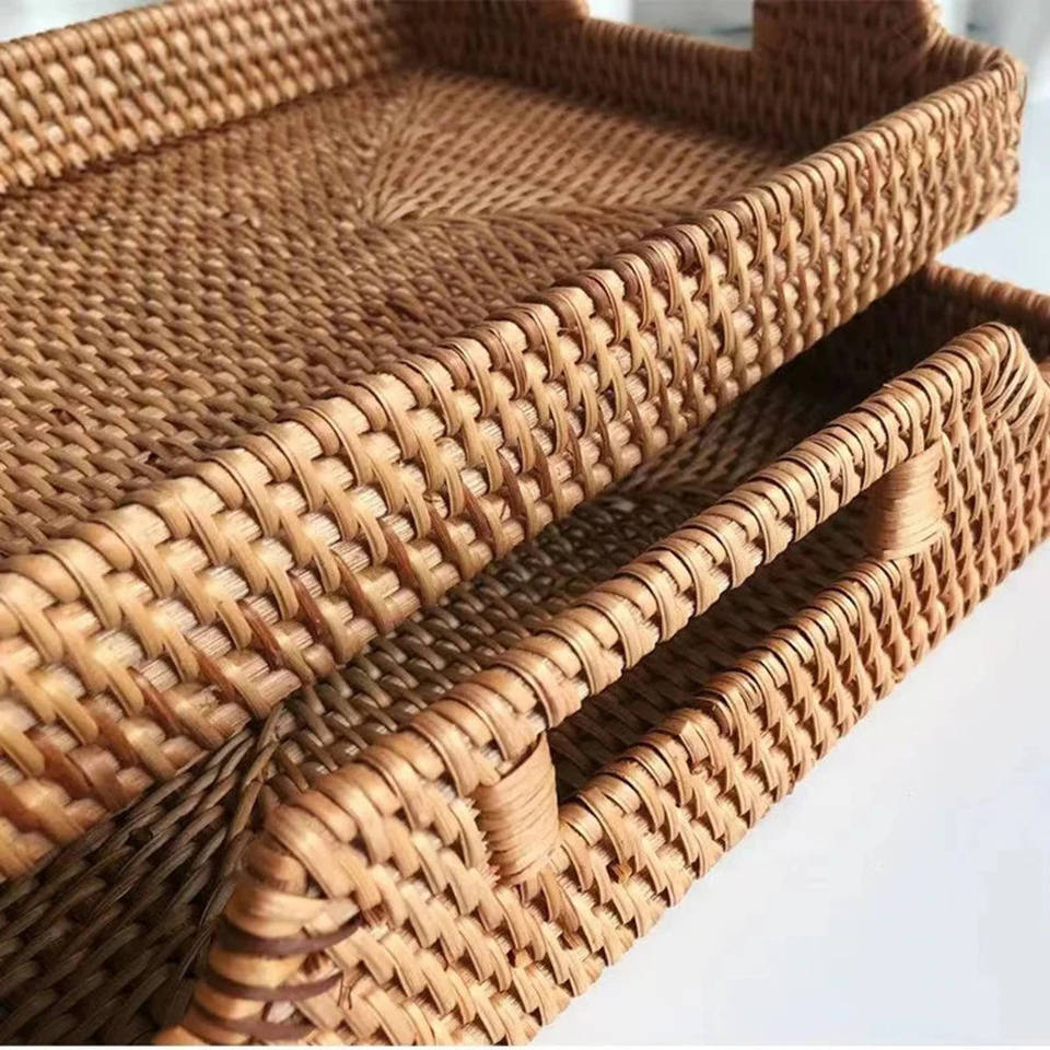 ถาดรองผลไม้หวายสานทรงสี่เหลี่ยมผืนผ้าสำหรับเก็บของในห้องนั่งเล่น